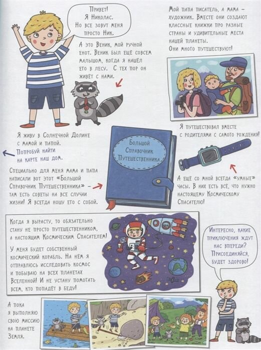Большая карта мира Николаса включает в себя путешествия в Горы, в лес, на Море, в Космос, Под Землю и Воду и к Динозаврам. И эти истории могут стать друзьями вашего ребёнка. А у друзей всегда учишься чему-то новому. И, конечно, друзья всегда-всегда тебя поддержат.