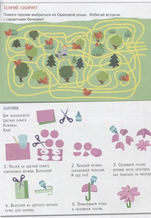 Множество разных лабиринтов, заданий, поделок и наклеек. Задания все разные и вписаны в сюжет -- читатель помогает героям справляться со сложными ситуациями. Скучно точно не будет! -