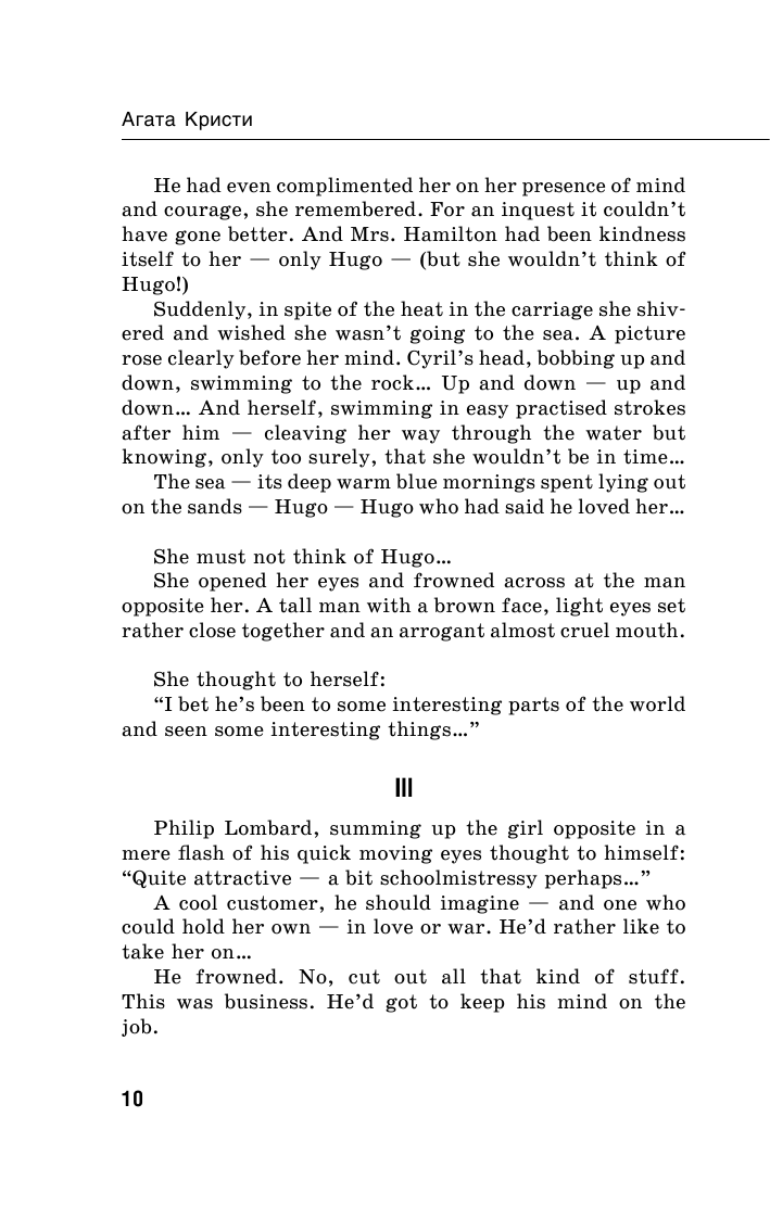 Сложный английский. При видимой простоте, нужно сильно потрудиться, чтобы понять. Но у Агаты Кристи такой слог во всех книгах. Легко и непринужденно читается только по русски. Поэтому, на мой взгляд, билингво- это прекрасное решение, чтобы каждую минуту не бегать за словарем.