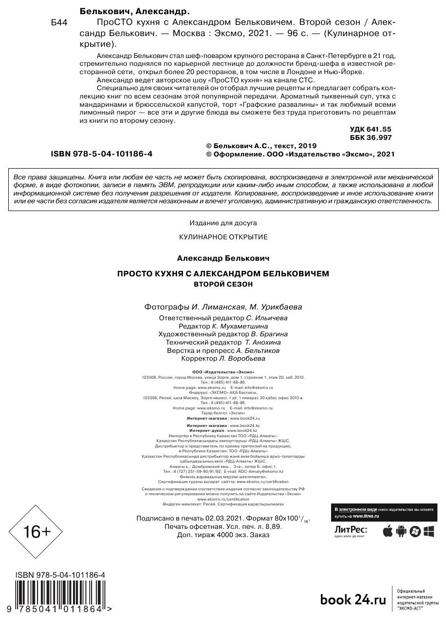 На сегодняшний день товар «Книга: ПроСТО кухня с Александром Бельковичем. Второй сезон (Александр Белькович); Эксмо, 2021» можно купить с кешбеком в 3 магазинах: Читай-город, book24, Буквоед