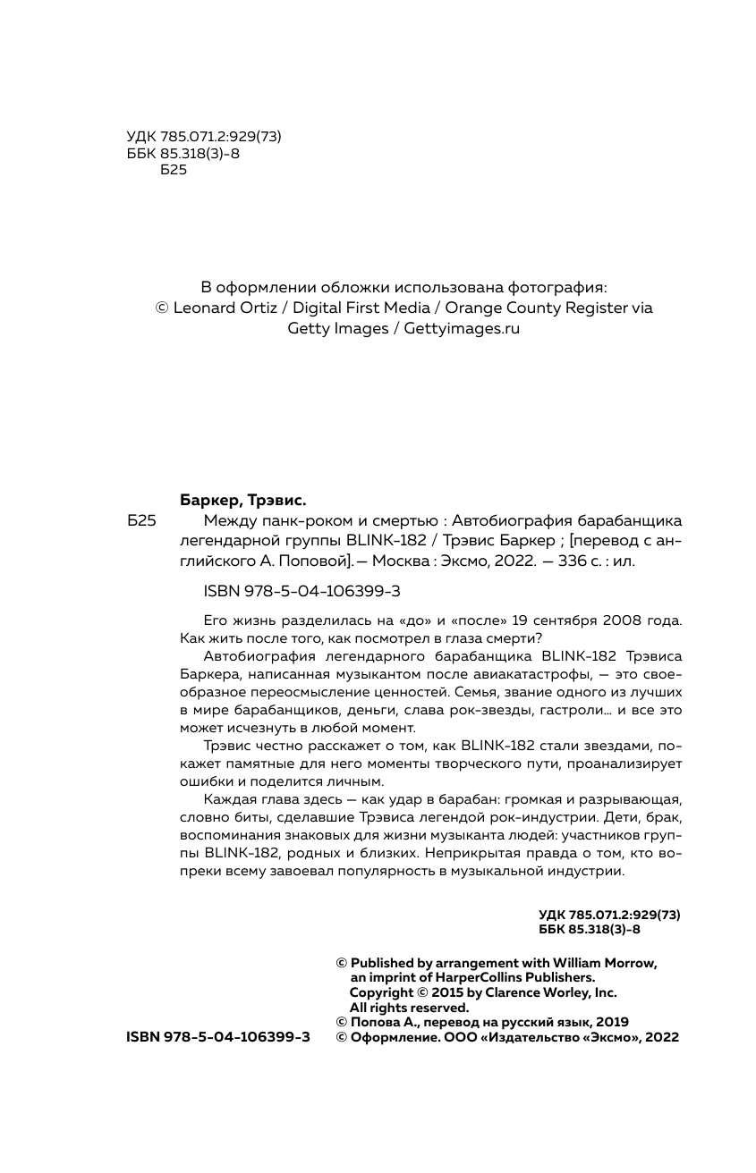 Между панк-роком и смертью. Автобиография барабанщика легендарной группы BLINK-182 (Баркер Трэвис); ООО "Издательство "Эксмо", 2020