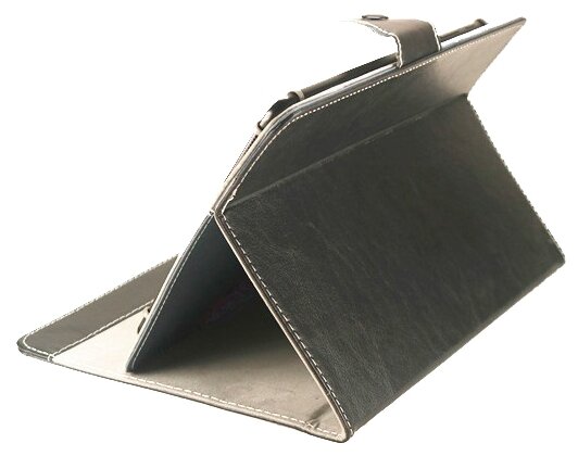 | Прочие особенности и свойства | Конструкция чехла хорошо защищает его экран и корпус от механического воздействия. Износоустойчивая кожа, из которой сшит чехол, позволяет использовать изделие продолжительный промежуток времени. Четыре угловых крепления нужны, чтобы надежно удерживать девайс внутри и не давать ему выпасть.,,Вы можете использовать чехол в формате подставки, что очень удобно при просмотре различных видео. |