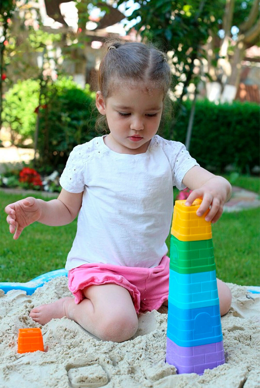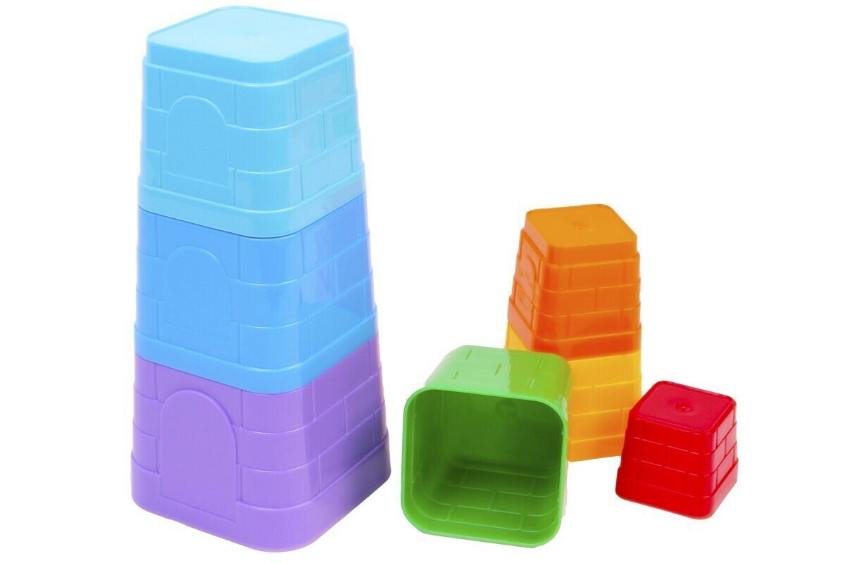 Игрушка «Пирамидка» - это классические пирамидки из 7-ми элементов, квадратной формы, которые по своей конструкции имитируют башни средневекового замка - с окнами и дверями и каменной кладкой. Порядок цветов элементов, подобранный в порядке цветов естественной радуги. Задача малыша - правильно подобрать элементы по размеру, чтобы построить башню.С такими играми ребенок изучает цвета, размеры и формы, делает первые шаги в счете. Строя пирамидки малыши развивают мелкую моторику и координацию. Педагоги рекомендуют эти игрушки для развития мелкой моторики рук, пространственного воображения и внимания. Игрушка также идеально подходит для использования в играх с песком - они будут незаменимыми при построении крепостей и замков из песка.Пирамидка - это простая и одновременно обучающая игрушка. С ней интересно играть дома и на улице в песочнице. Благодаря различным размерам можно собрать пирамиду от большого элемента к меньшему, или наоборот, сложить все в ведерко. В песочнице ведерко и элементы пирамидок удобно использовать как формочки для песка и формировать пасочки в разной последовательности. Также с новой красочной пирамидкой купания в ванной станет интереснее и разнообразнее.Игрушки для детей от 1 года; Развивает моторику рук, логическое мышление и фантазию; Габаритные размеры: 38.5х9.5х9.5 см.