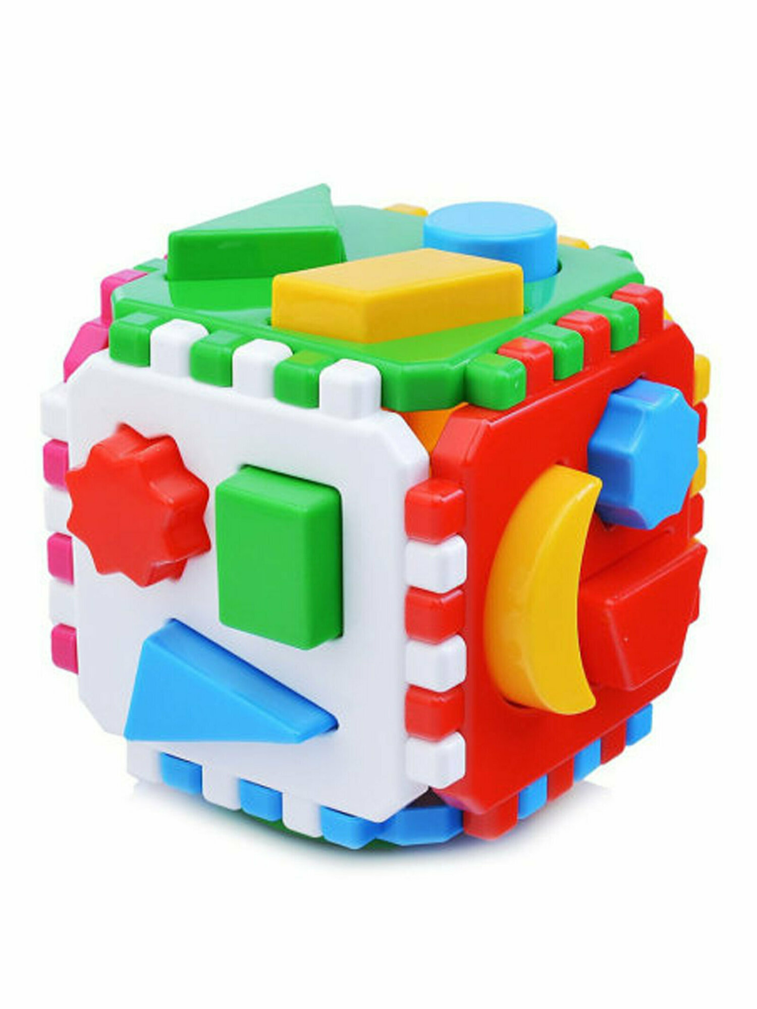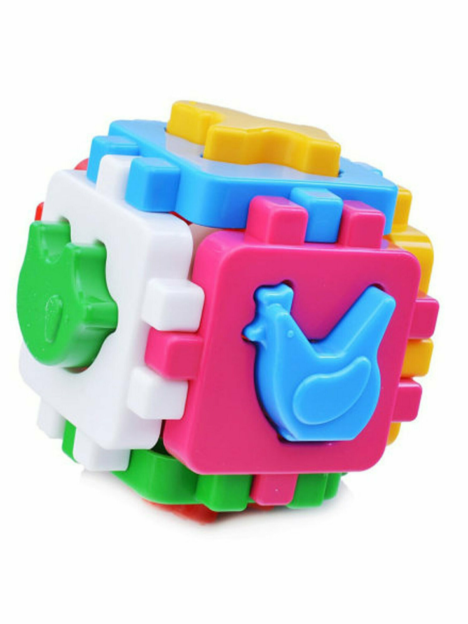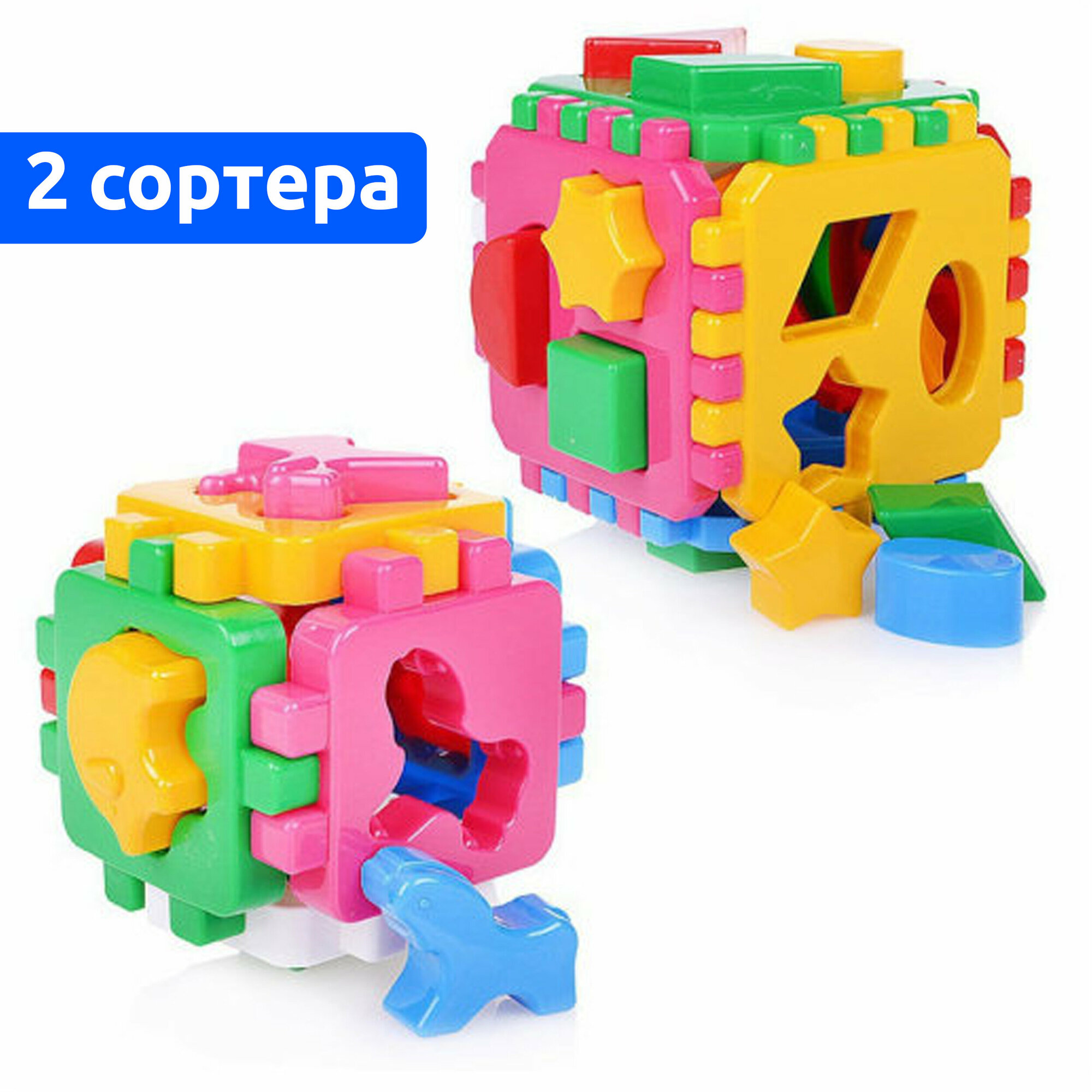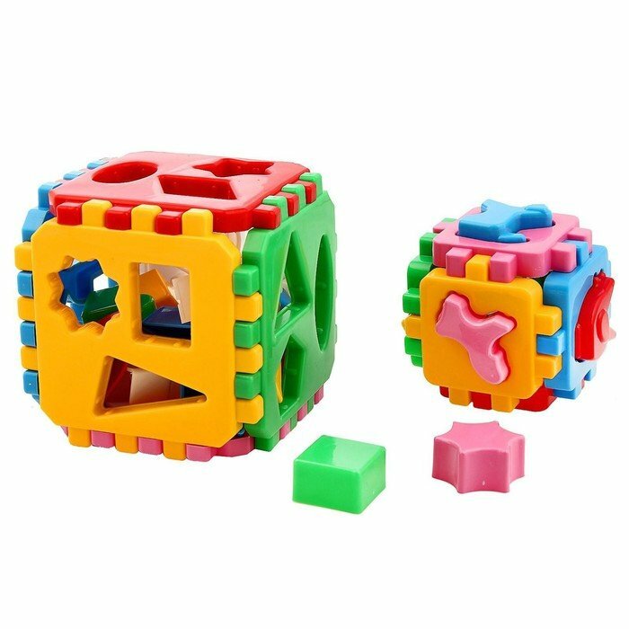 | Состав набора | 6 фигурок домашних животных; 18 геометрических фигур; разборной куб-сортер маленький; разборной куб-сортер большой |