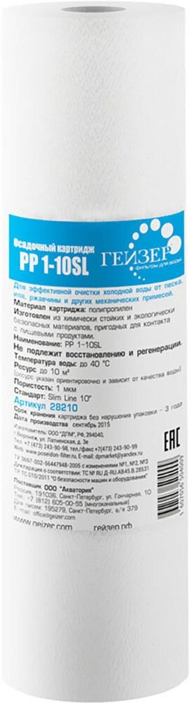 Картридж из вспененного полипропилена, предназначен для механической очистки воды от ржавчины, грязи, песка и других нерастворимых примесей размерами более 10 мкм. Восстановлению не подлежит, после окончания ресурса заменяется на новый.