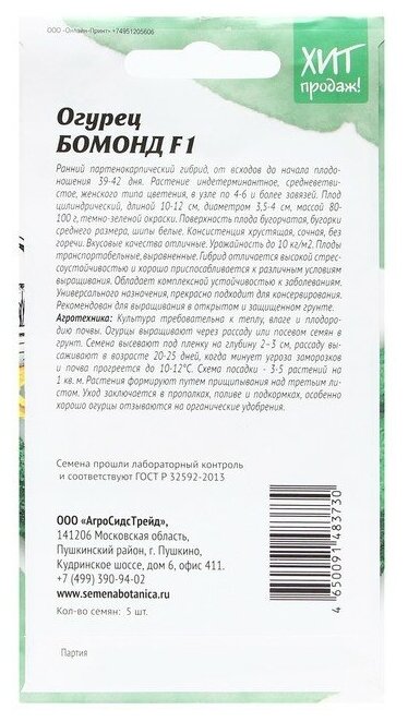 Сервис сравнения цен СкидкаГИД предлагает сравнить цены на товар «Огурец АгроСидсТрейд Бомонд F1 5 шт»