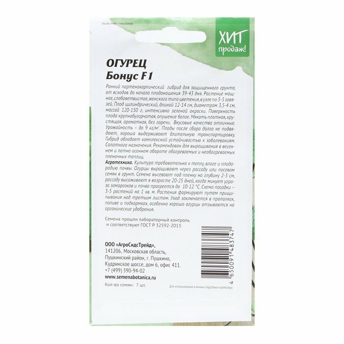 Тип товара: Огурец