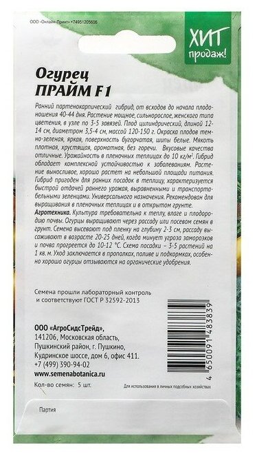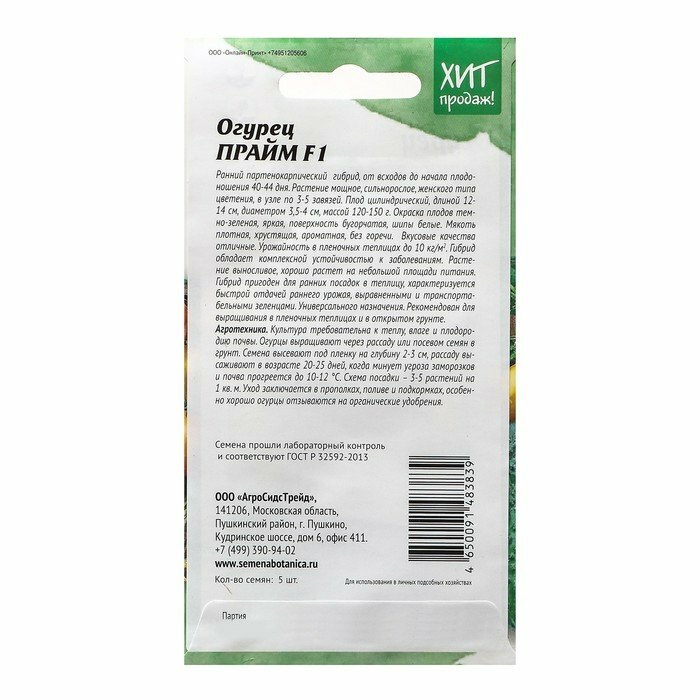 Сервис сравнения цен СкидкаГИД предлагает сравнить цены на товар «Огурец АгроСидсТрейд Прайм F1 5 шт»