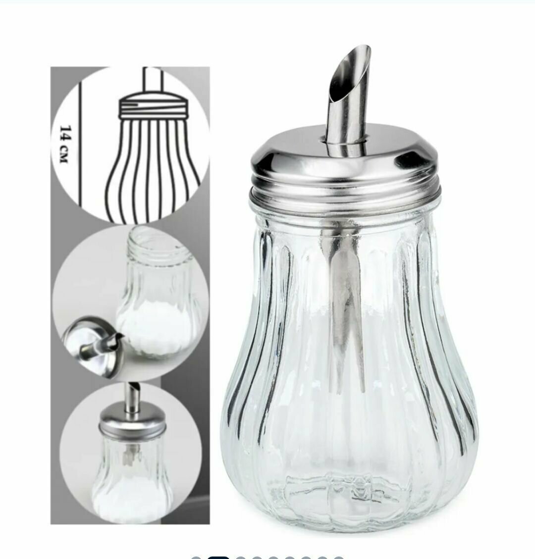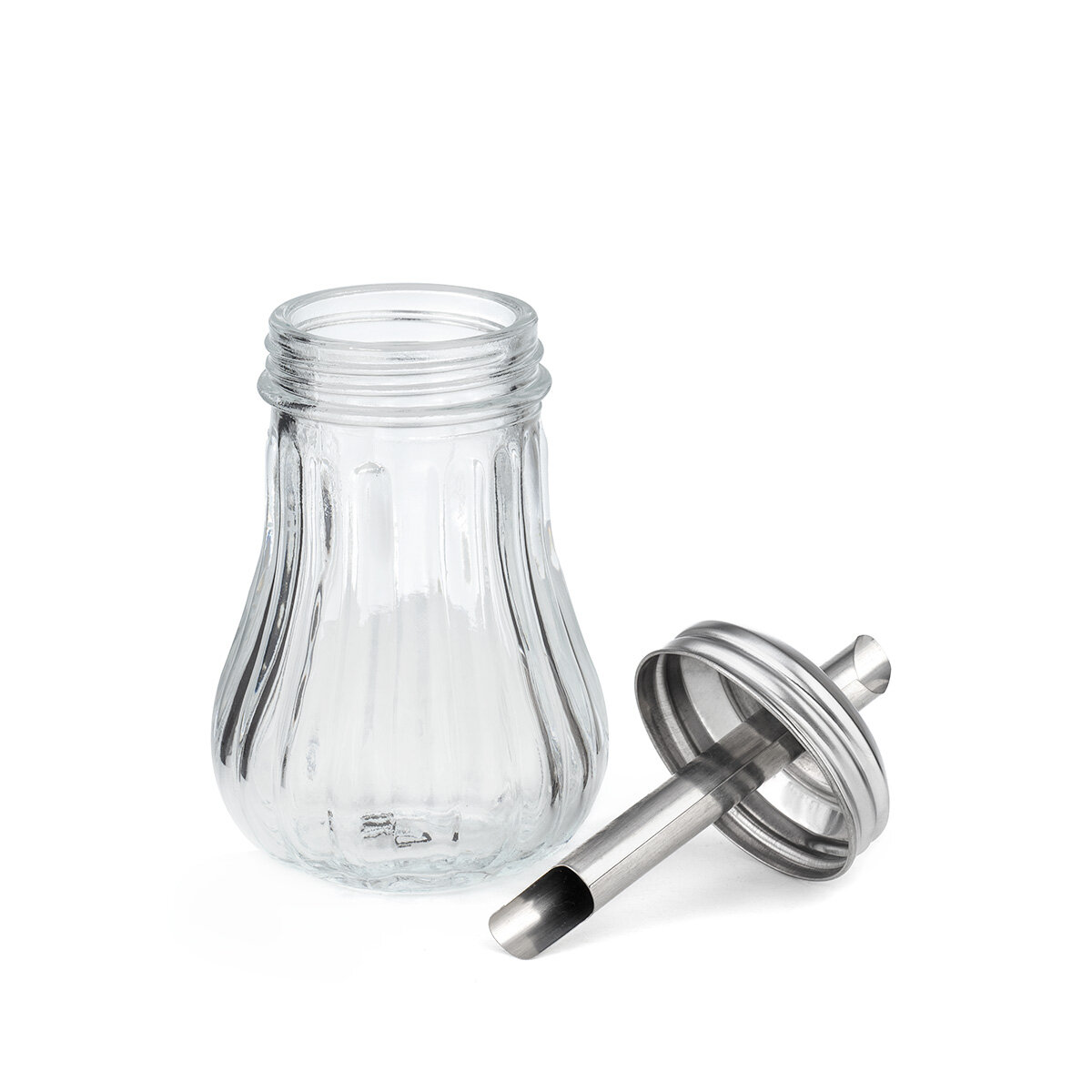 Сахарница выполнена из толстого прозрачного рельефного стекла, а удобный съемный дозатор – из экологичной нержавеющей стали. Изделие позволяет насыпать сахар небольшими порциями и контролировать его количество.