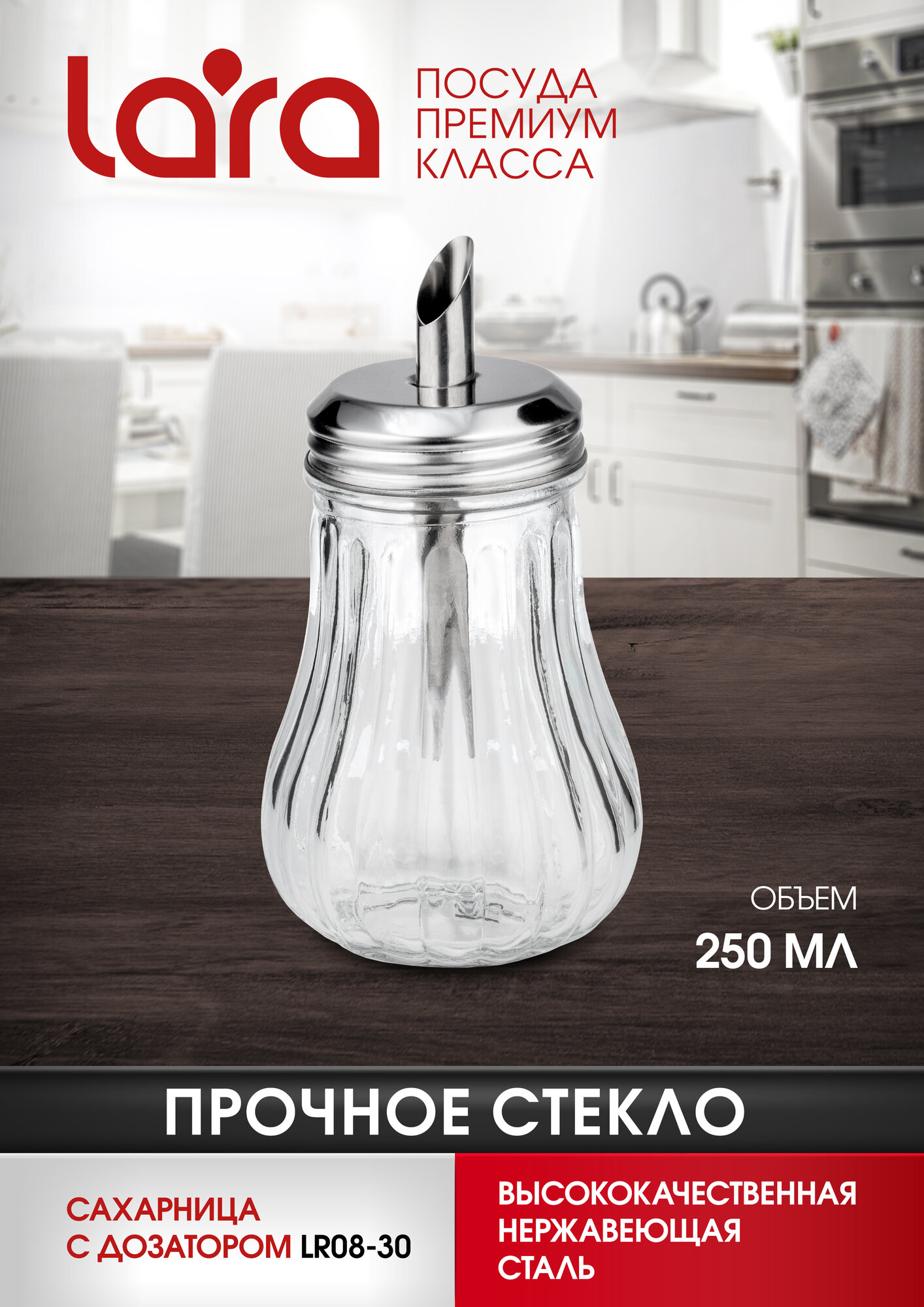 Сахарница с дозатором LARA LR08-30 250мл стекло