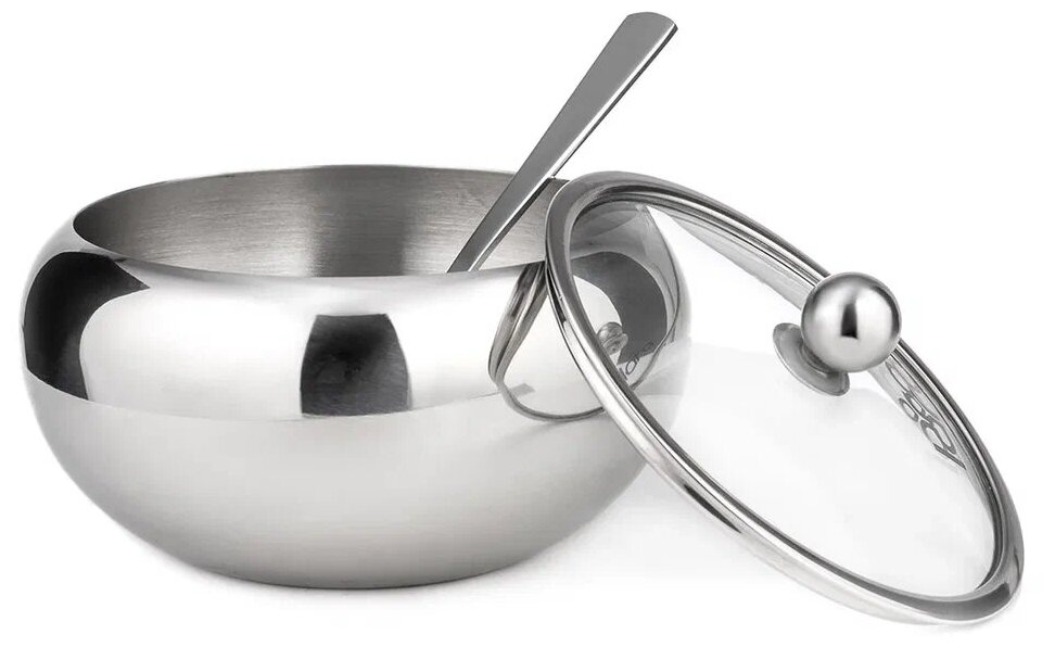 | Описание | Объем 560 мл,,Высококачественная сталь,,Крышка из закаленного стекла,,Удобная выемка для ложки в сахарнице,,Зеркальная полировка,,Толщина стенок корпуса 0.7 мм,,Стальная ложечка в комплекте |