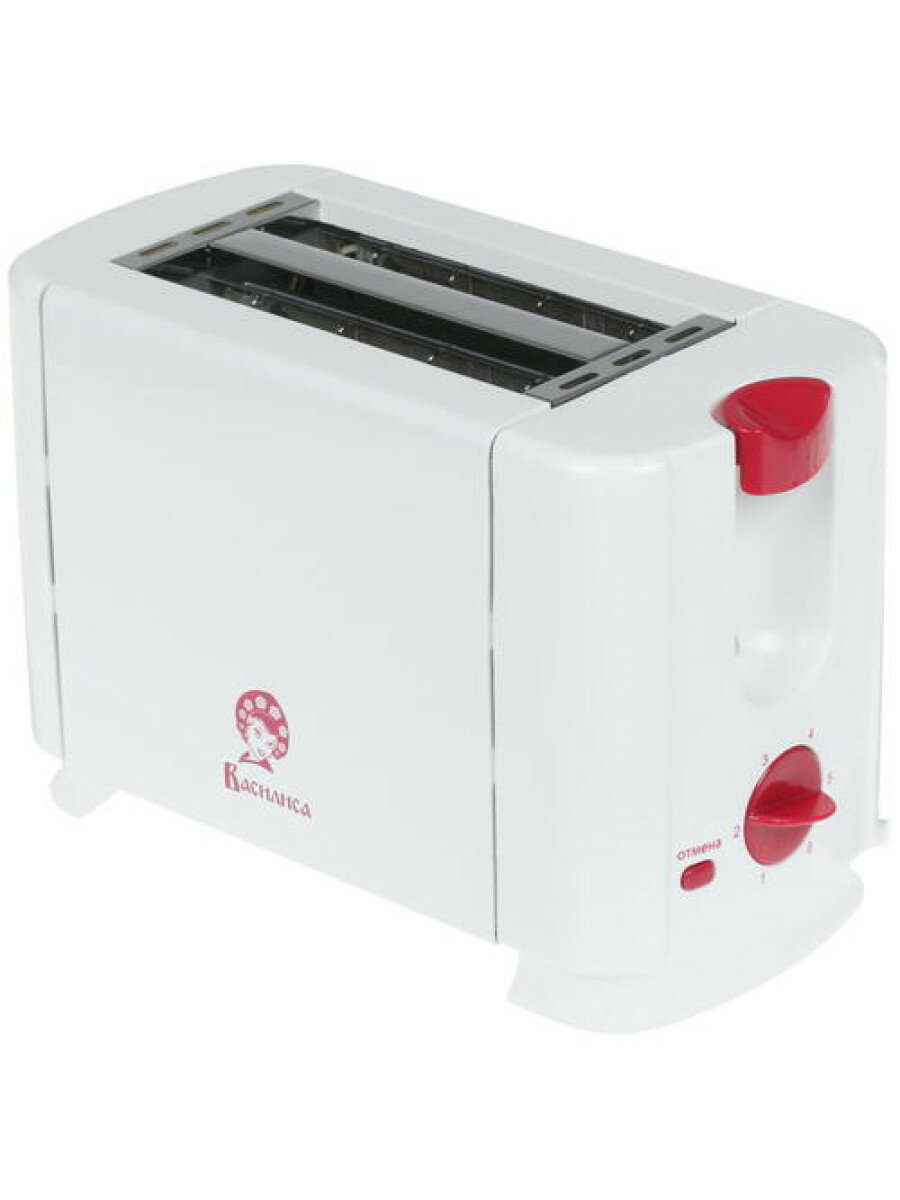 Тостер "Василиса" - это сочетание стиля и функциональности. Благодаря своему бело-красному дизайну, он станет ярким акцентом на любой кухне. Устройство оснащено двумя отделениями, что позволяет одновременно готовить два тоста.