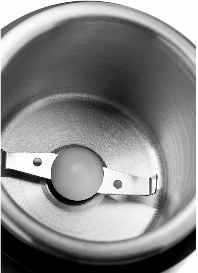 - Достаточно большой объём чаши. Практически нет летящих мимо крошек, только немного осыпается с бортиков после открытия крышки, но в целом, кухня и кофемолка после работы чистая. Плотно закрывающаяся крышка (возможно со временем замок и расшатается, но пока очень хороша).
