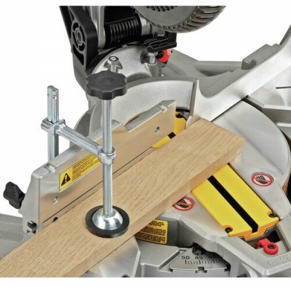 | Прочие особенности и свойства | Прецизионная регулировка угла реза и 11 фиксированных положении? часто используемых углов реза Фиксация в компактное транспортное положение Литая алюминиевая платформа и выдвижнои? упор Новая конструкция рукоятки для удобства Наклон 48°/-3° Угол поворота право/лево 50°/50° |