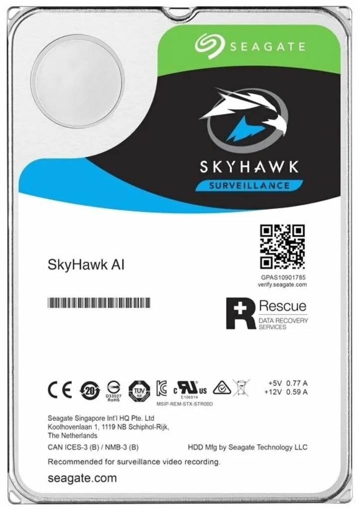 | Прочие особенности и свойства | жесткие диски для видеонаблюдения с искусственным интеллектом,,поддержка до 64 HD-камер и 32 дополнительных потоков ИИ,,высокая надежность за счет рабочей нагрузки корпоративного уровня:550 ТБ/год |