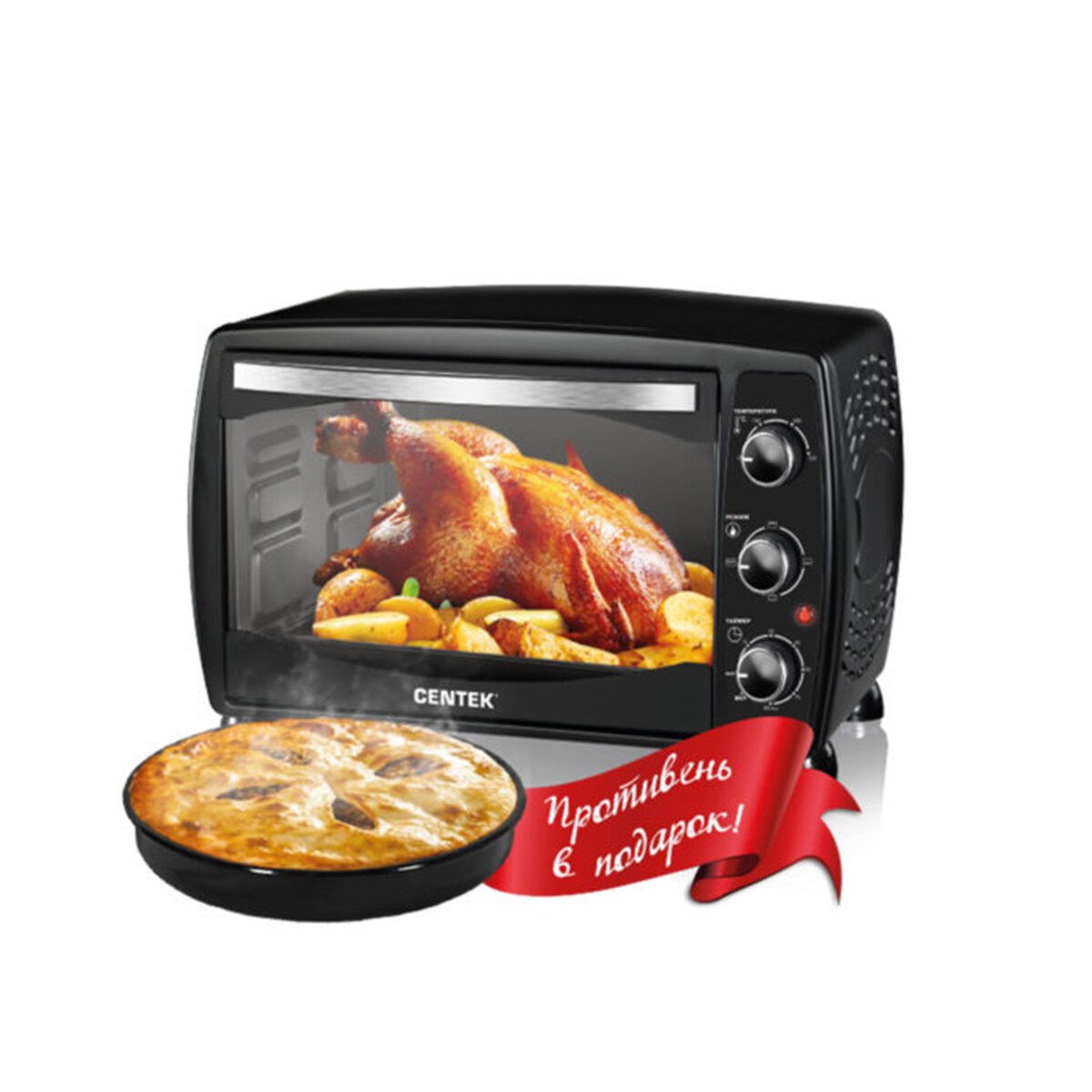 Мини-печь Centek не займет много места на кухне и порадует большими возможностями.
