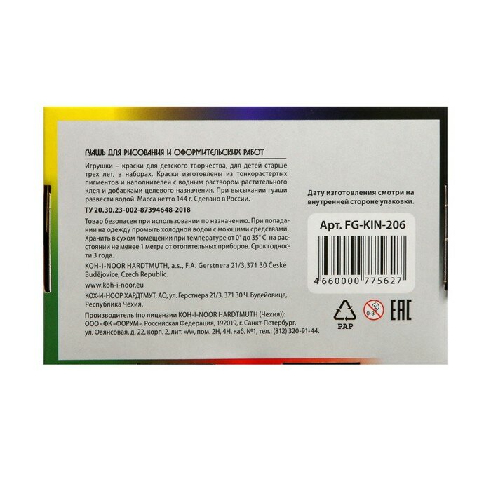 KOH-I-NOOR Гуашь хо (FG-KIN-206) 25 мл 6 цв. ассорти