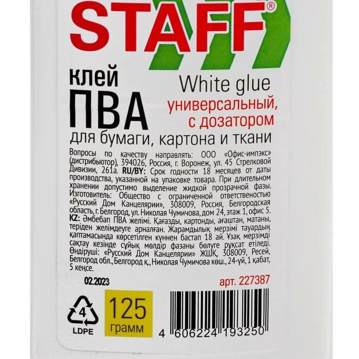 STAFF Клей ПВА Basic 227387 1 шт. 125 г 14 мл
