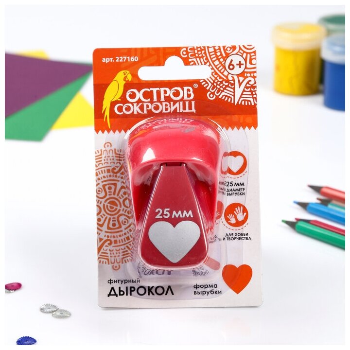 Дырокол фигурный Остров сокровищ Сердце (227175/227160) красный 8.5 см