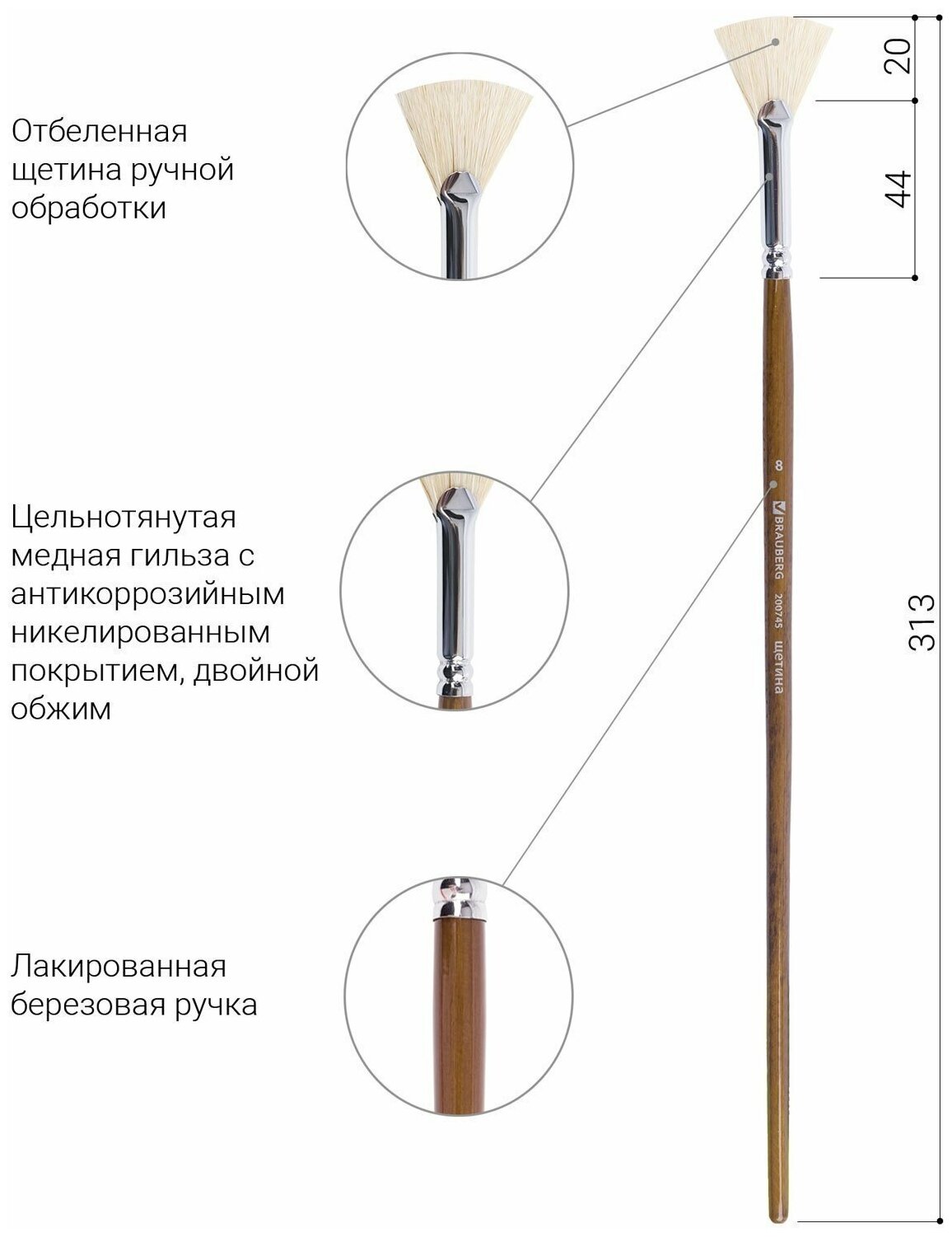 Кисть художественная профессиональная Brauberg Art Classic щетина веерная № 8 200745