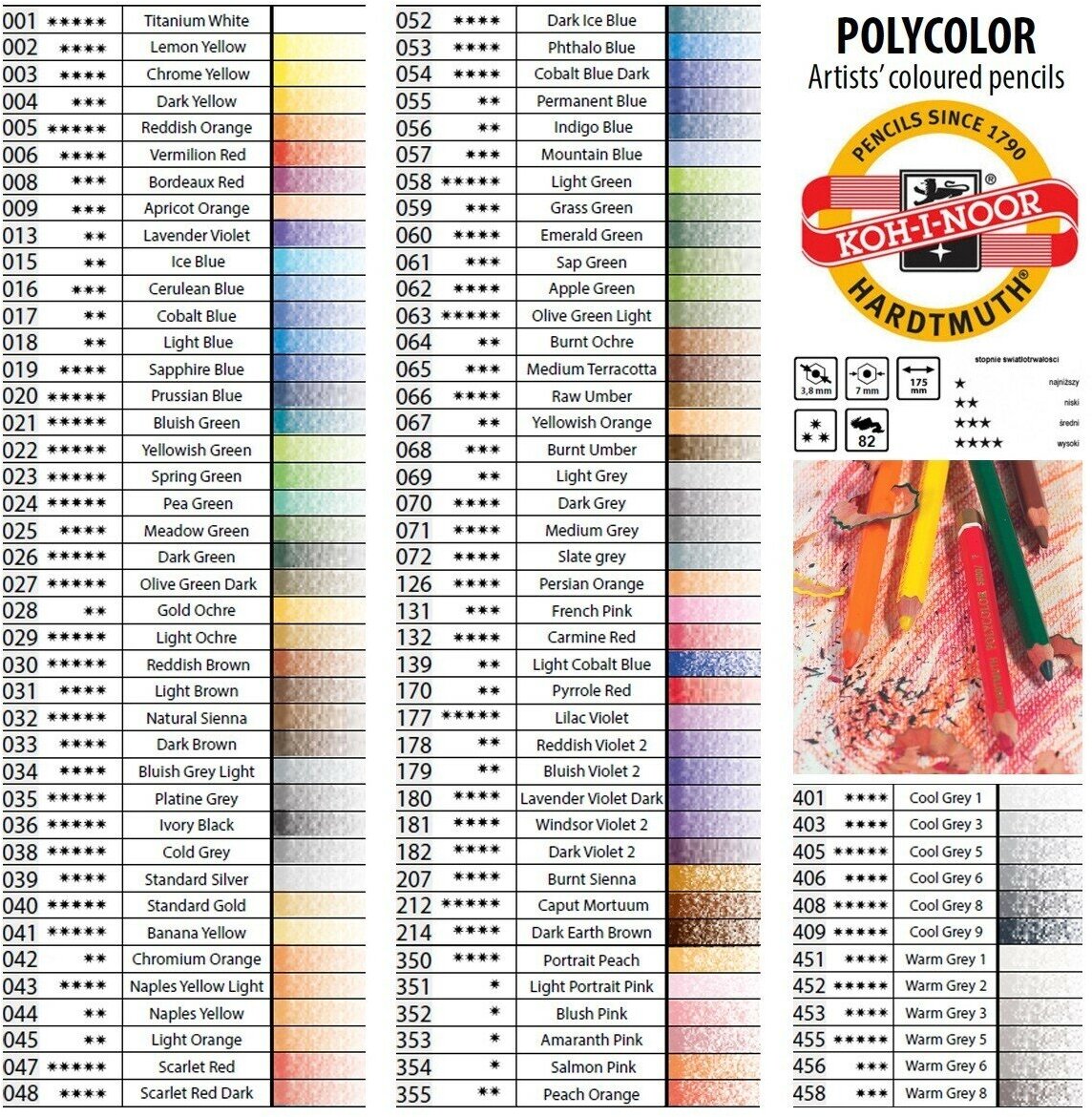 Профессиональные цветные карандаши высокого качества. Предназначены для использования в графическом искусстве, где важна чёткая передача цвета и линий. Абсолютная чистота, насыщенность и равномерность цвета по всей поверхности рисунка.