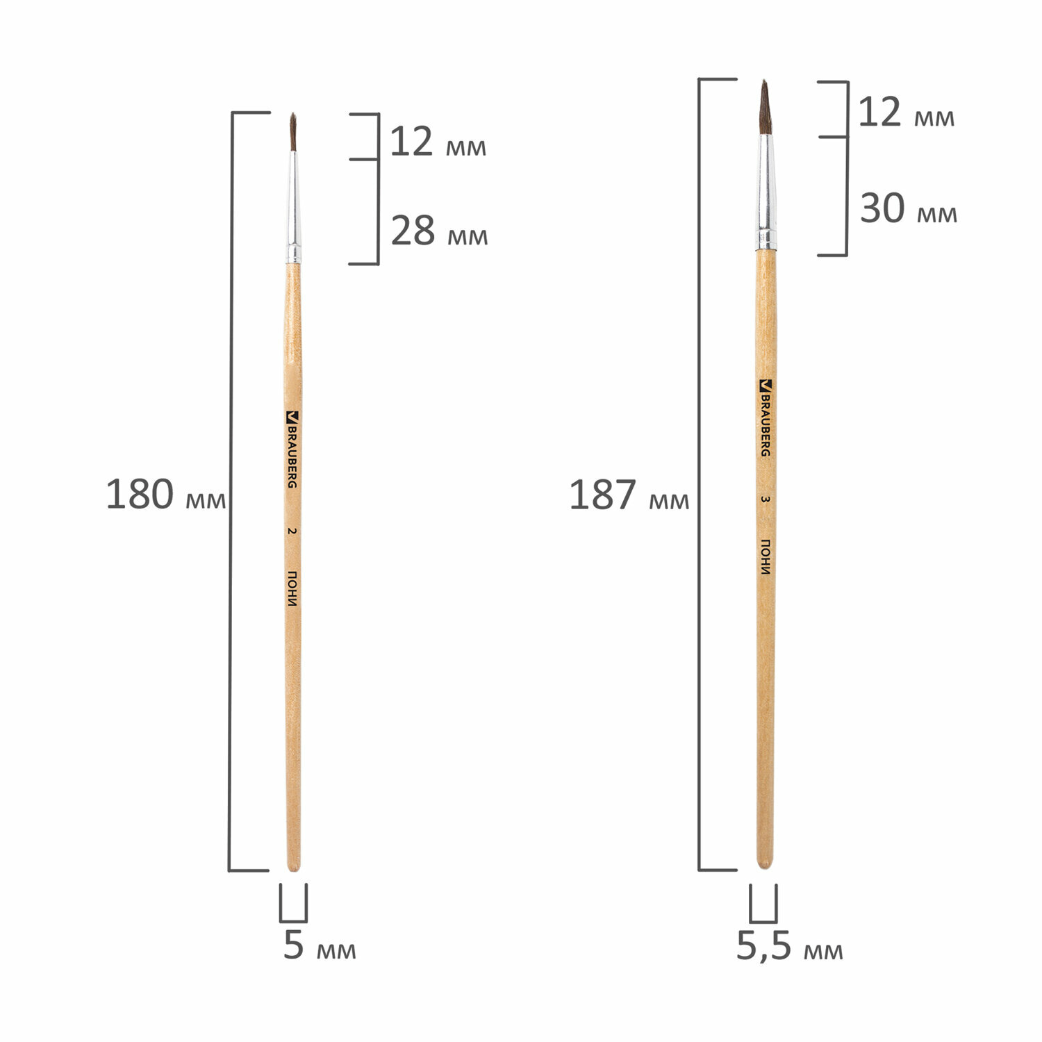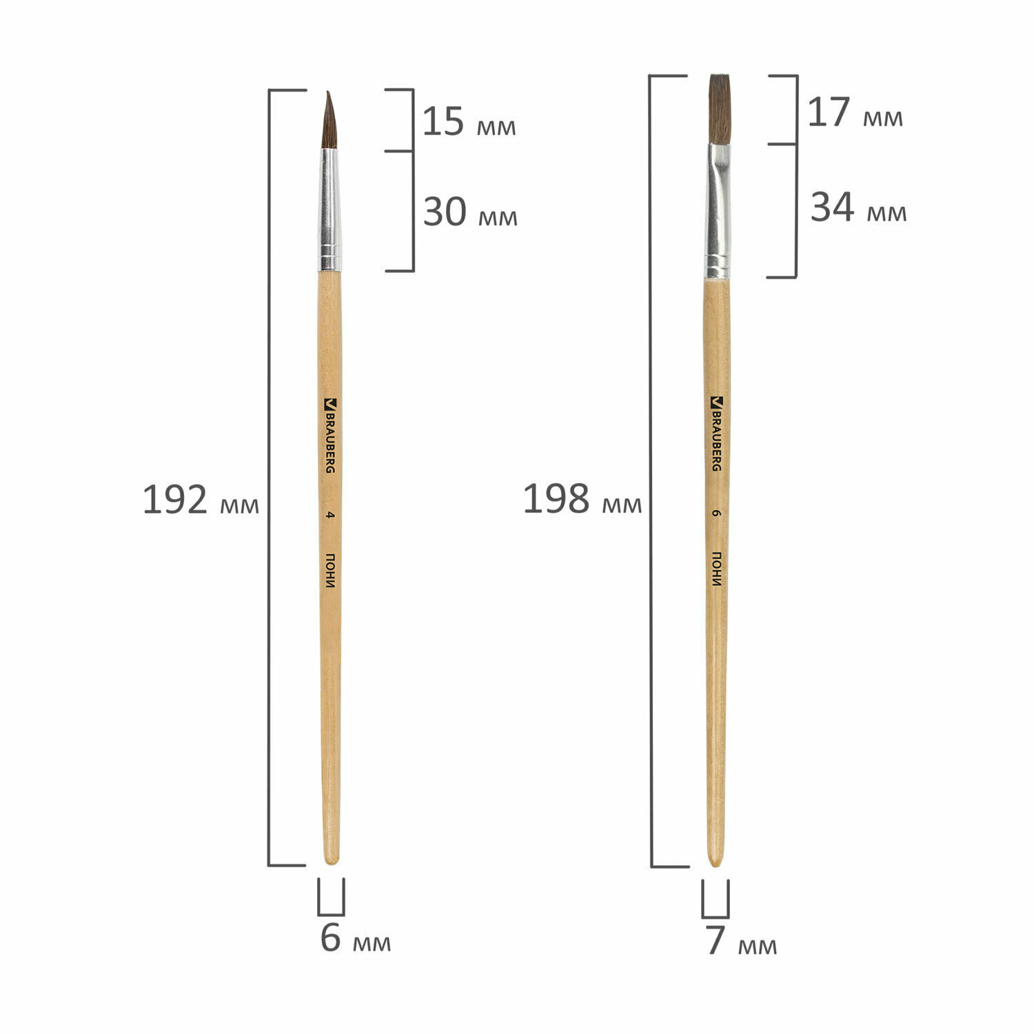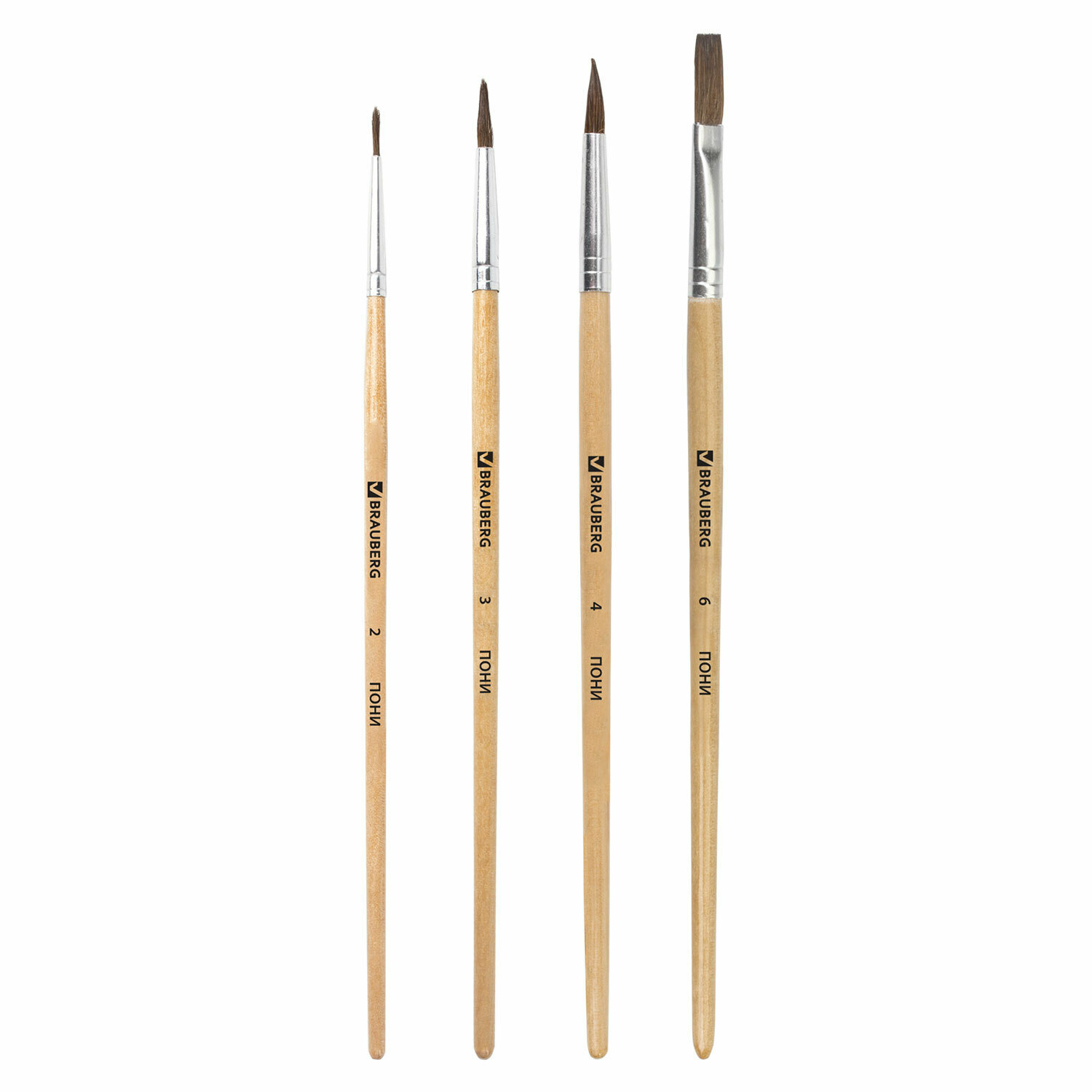 Набор кистей BRAUBERG пони с короткой ручкой (200221) №6 4 шт. блистер коричневый