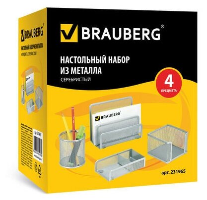 Brauberg Germanium это настольный набор для офисного сотрудника или руководителя, также может использоваться в домашних условиях. Набор позволяет правильно организовать пространство и установить для каждого предмета на рабочем столе определенное место. Жизненное необходим для пользователей, которые ценят чистоту и порядок. Предметы изготовлены из металлической сетки. У всех предметов в наборе имеются мягкие подушечки на дне, предотвращающие скольжение и не царапающие мебель.