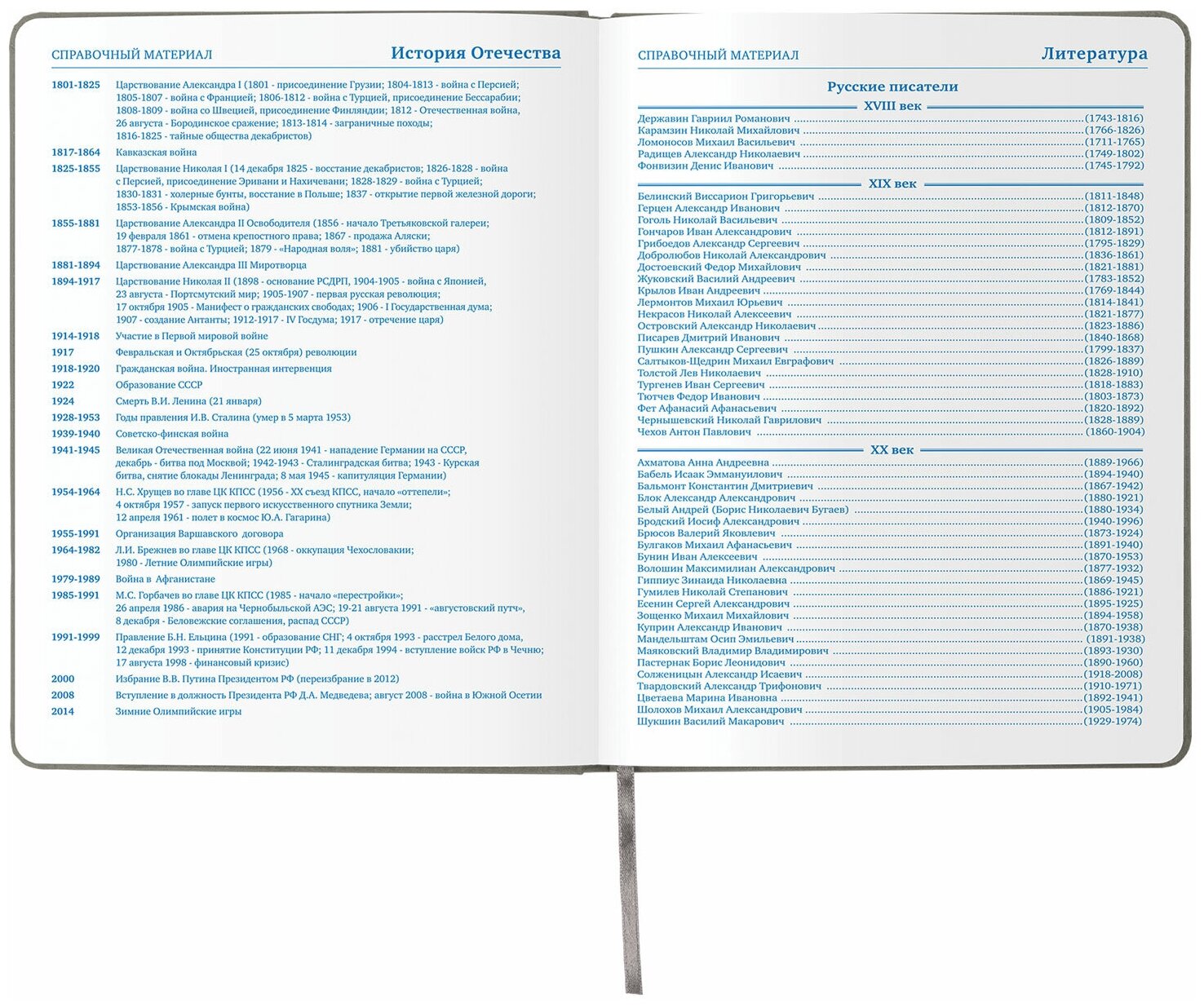 | Особенности | закругленные углы; с закладкой; справочные материалы |