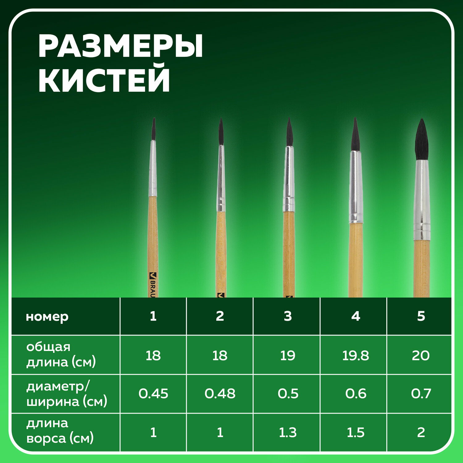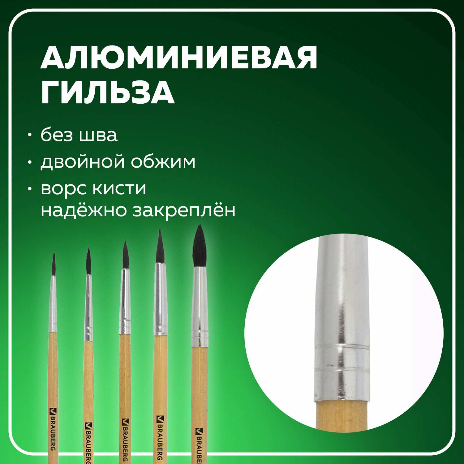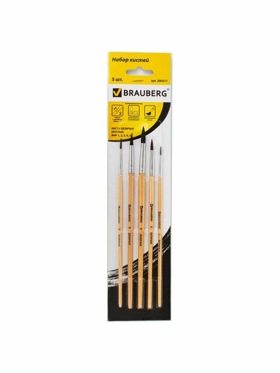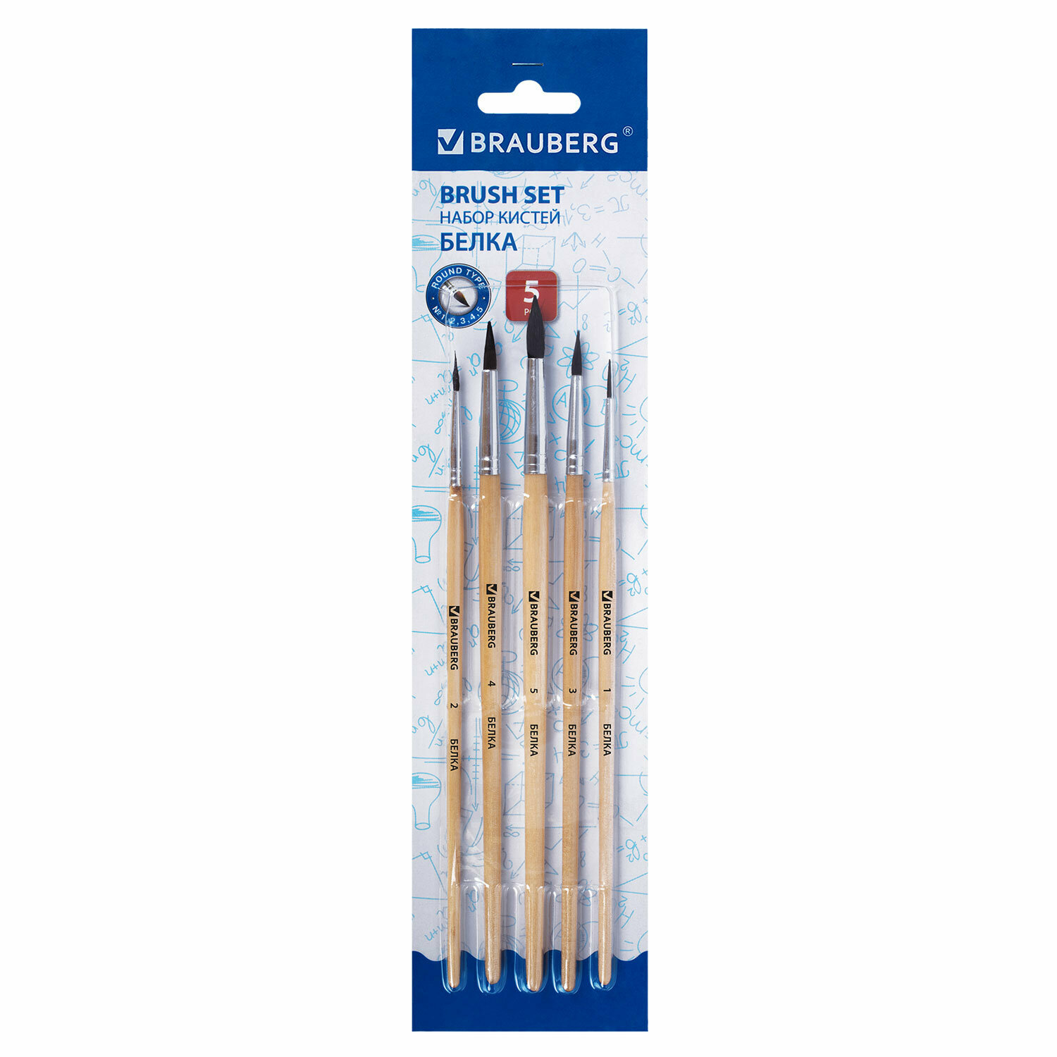 Набор кистей BRAUBERG белка круглые с короткой ручкой №5 5 шт. блистер разноцветный 200217
