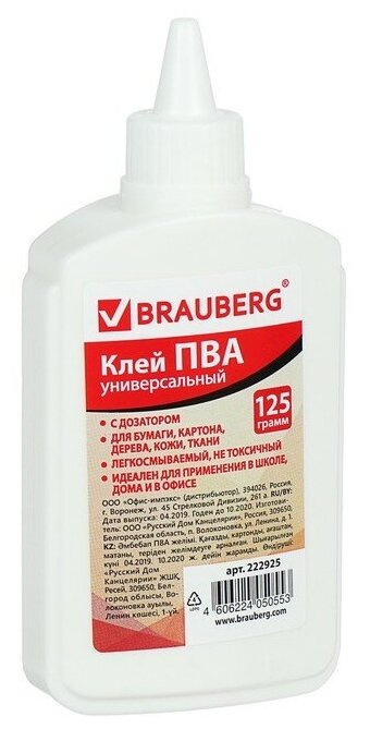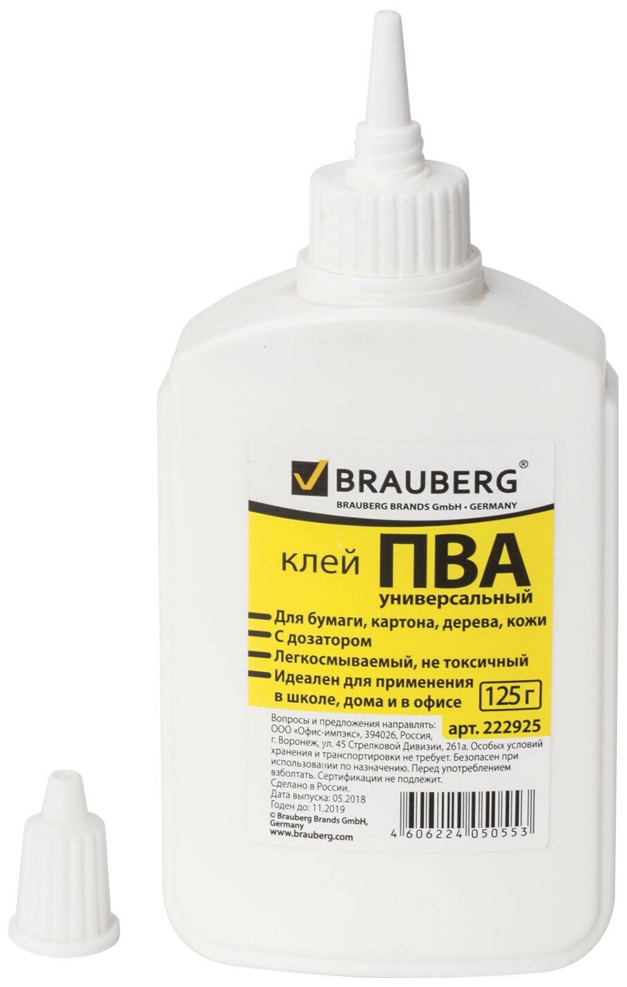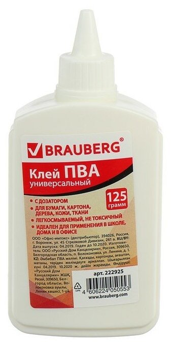 - Клей ПВА Brauberg предназначен для склеивания бумаги, картона, дерева.
