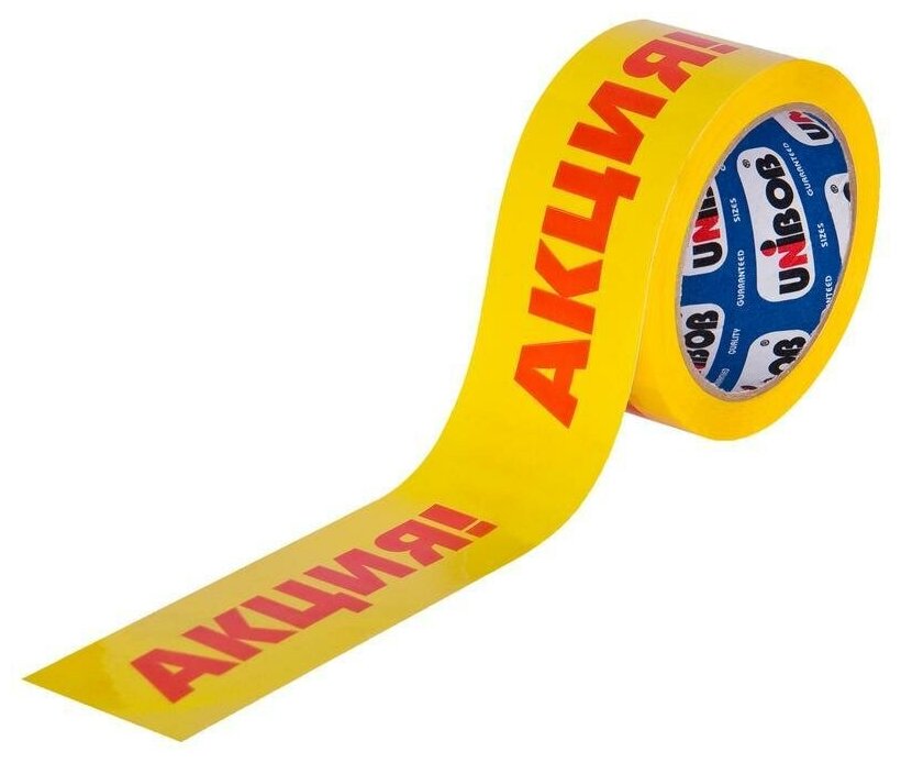Клейкая лента (скотч) упаковочная Unibob (50мм x 66м 50мкм надпись «акция!» желтая) (4606224084213) 224044