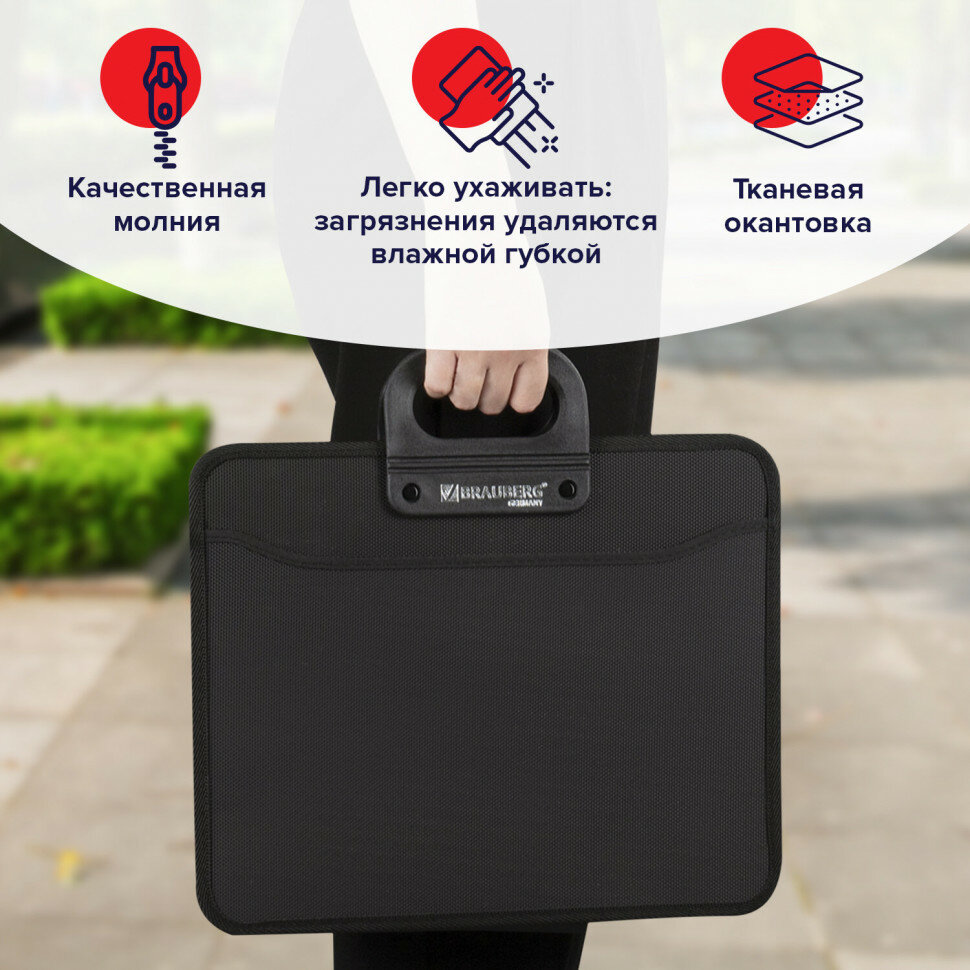 BRAUBERG Портфель пластиковый на молнии Премьер А4 3 отделения черный 223083