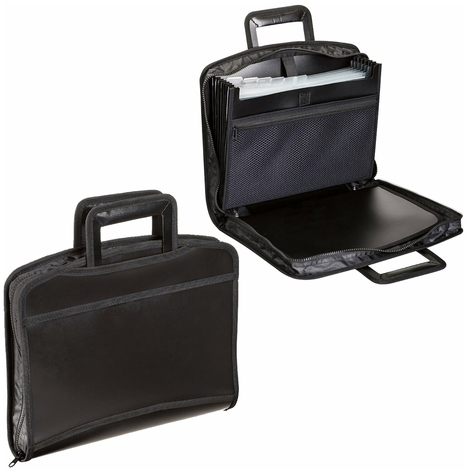 BRAUBERG Папка-портфель А4+ 4 отделения 2 кармана на молнии пластиковая черный 225169