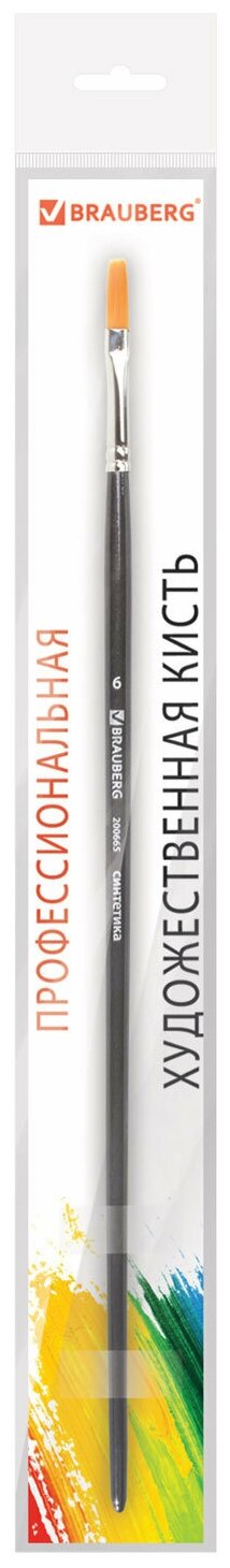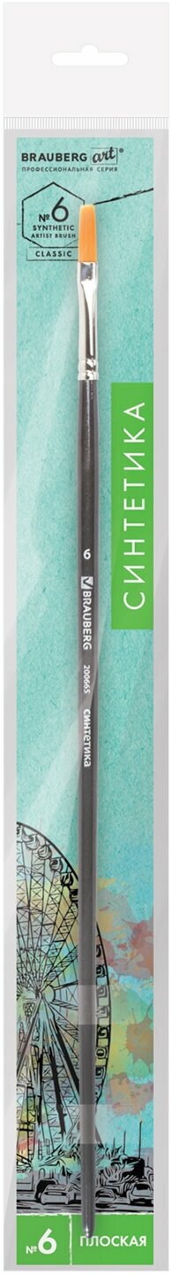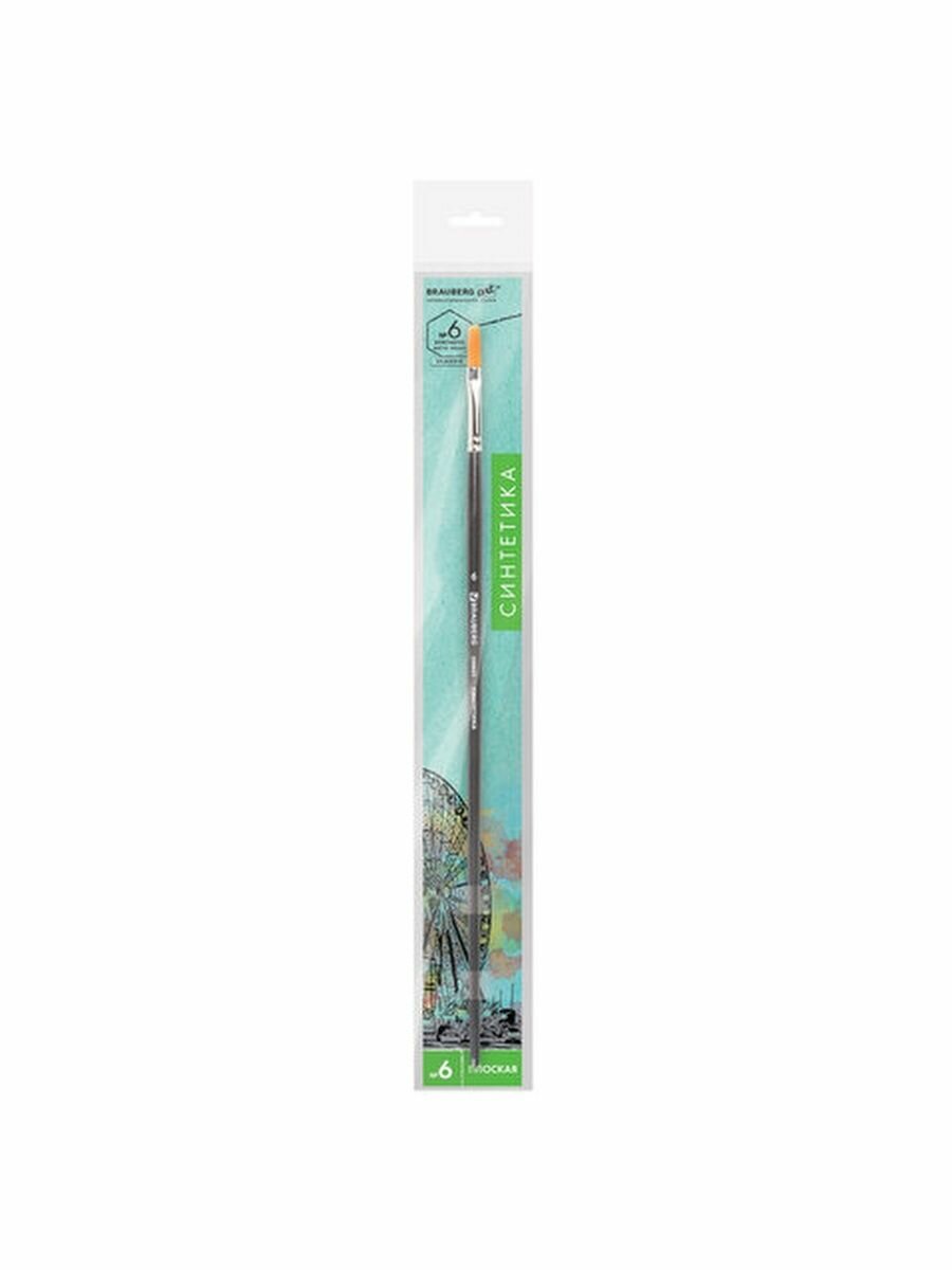 Кисть BRAUBERG Art Classic синтетика жесткая плоская длинная ручка №6 10 шт. пакет черный 200665