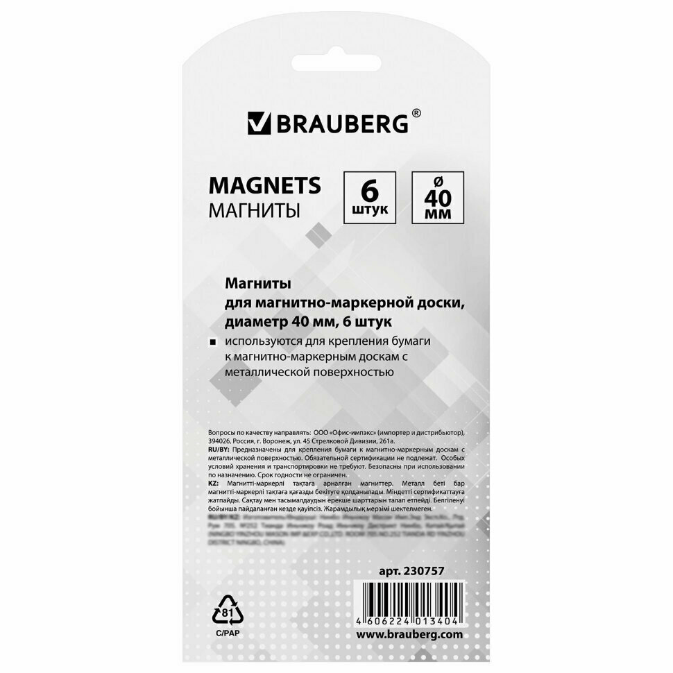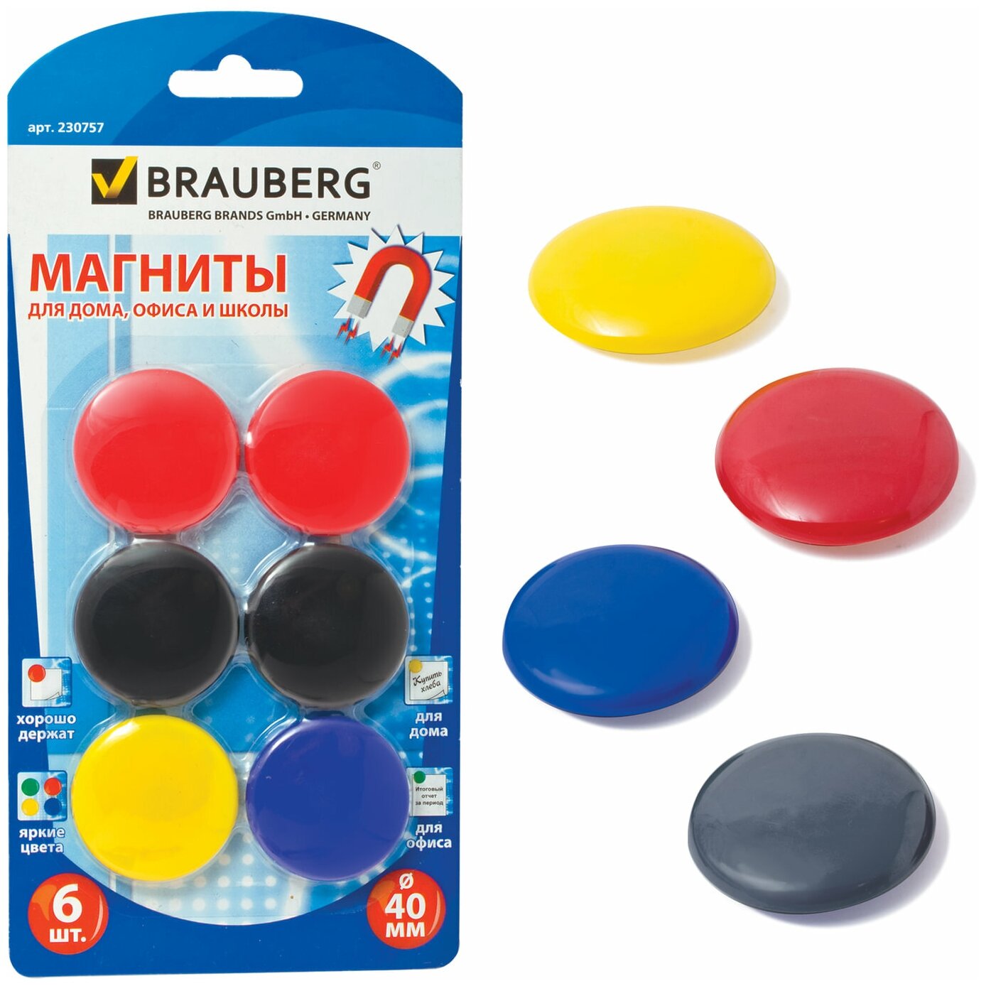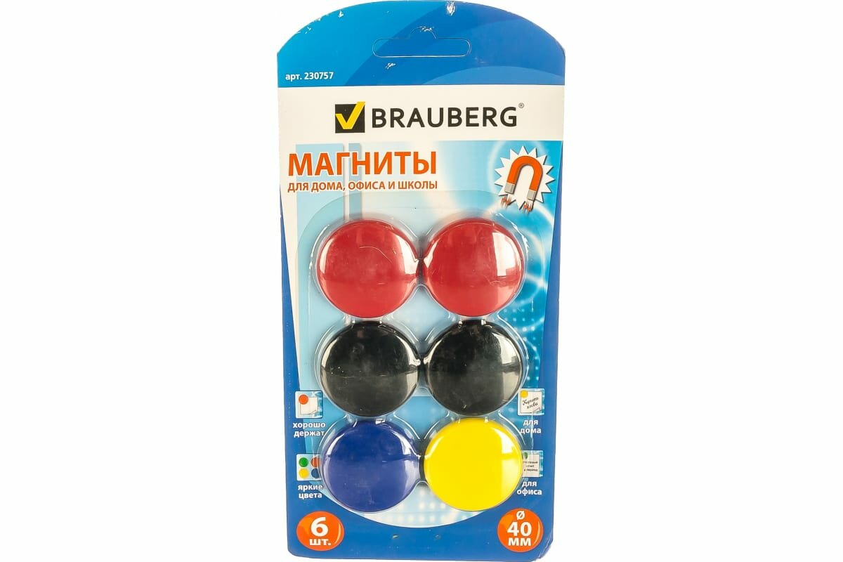 Магниты для доски магнитно-маркерная BRAUBERG 230757 разноцветные