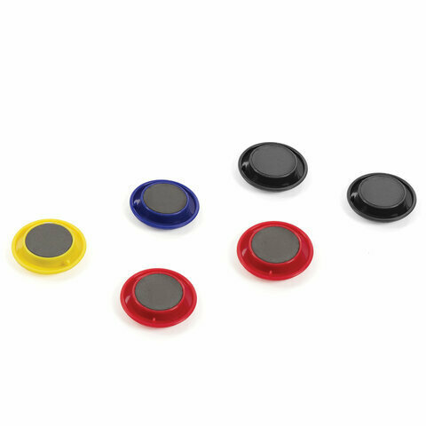 - Магниты Brauberg круглой формы большого диаметра с пластиковым покрытием для магнитно-маркерных досок.