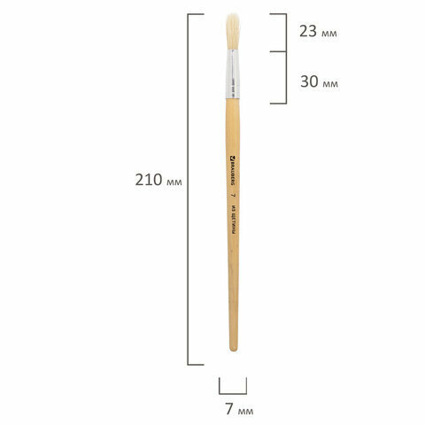 Кисть BRAUBERG щетина круглая с длинной ручкой №7 1 шт. натуральный 200198
