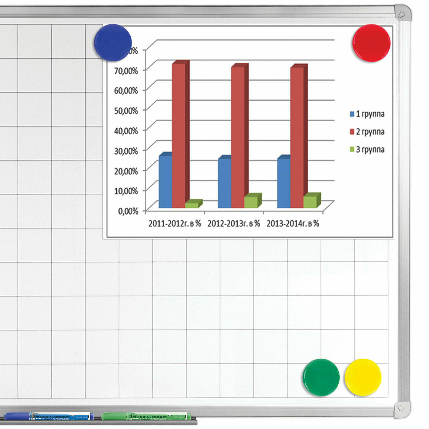 - Магниты Brauberg круглой формы большого диаметра с пластиковым покрытием для магнитно-маркерных досок.