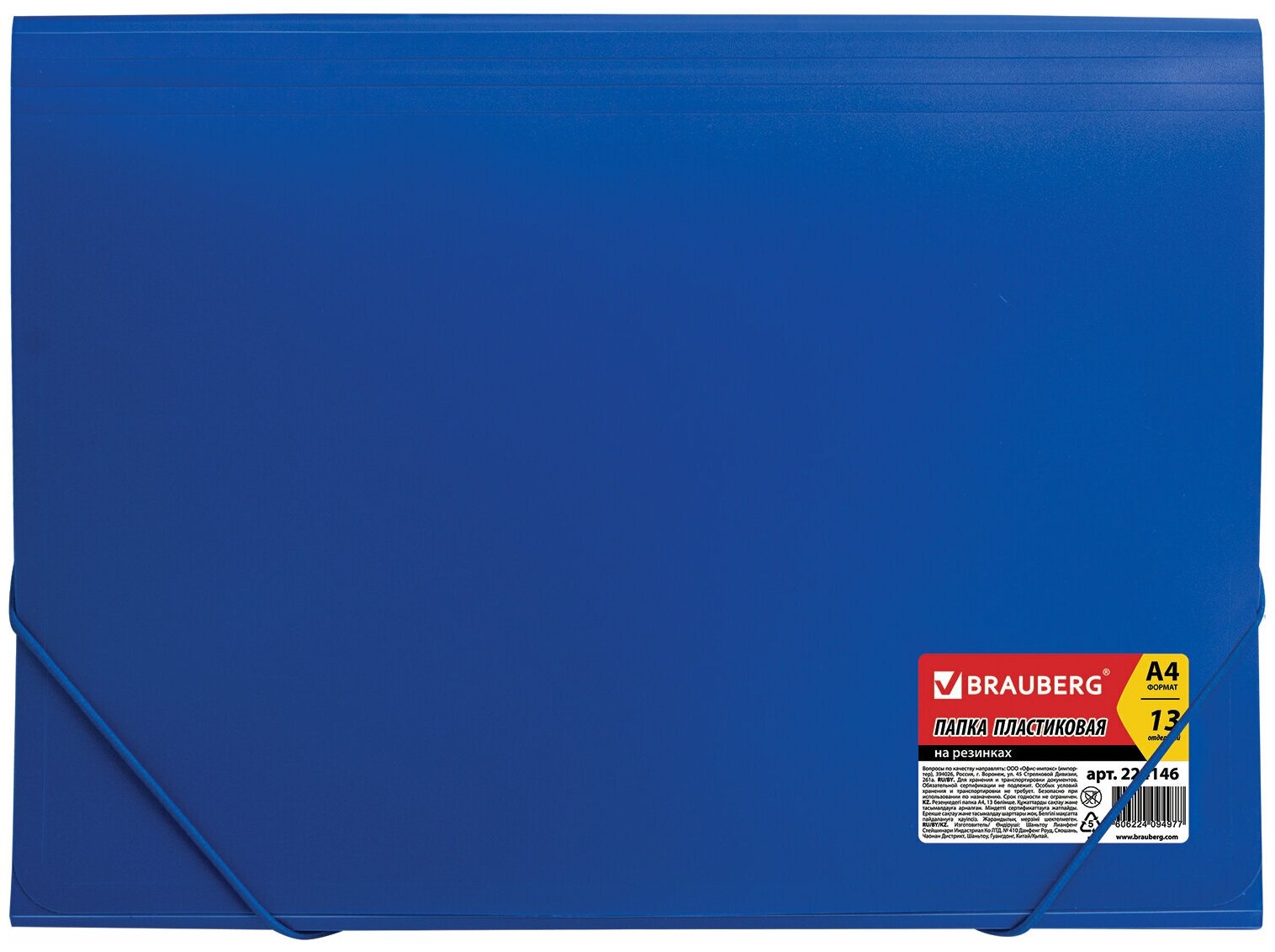 Папка Brauberg на резинках А4 пластиковый индекс черная 224147