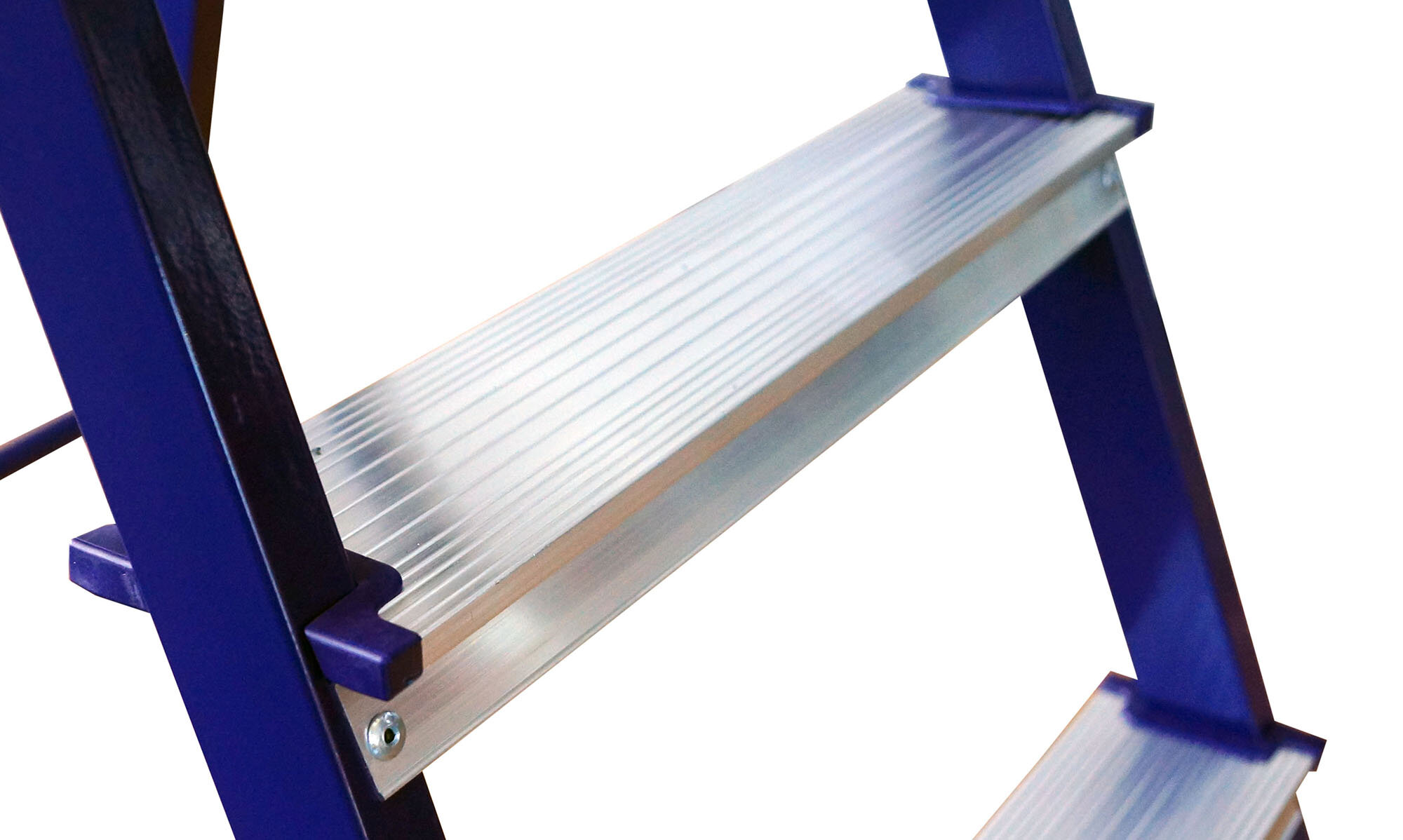 | Прочие особенности и свойства | Стальная стремянка Алюмет М8404 выполнена из прямоугольного профиля и окрашена синей полимерной краской. Эта модель рассчитана на высокую нагрузку, обеспечивает хорошую устойчивость как всей конструкции, так и каждой ступеньки по отдельности. Ступени выполнены из алюминия, имеют специальное рифление, что снижает вероятность скольжения во время работы. Прочный страховочный ремень предотвращает выход стремянки из рабочего положения, что обеспечивает безопасную работу на верхних ступенях. Применяется в быту и строительной области. |