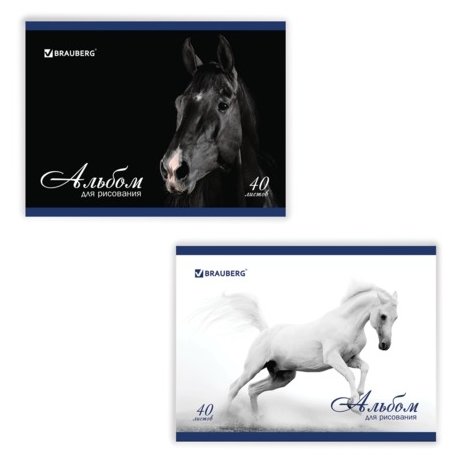 Альбом для рисования BRAUBERG Благородные кони 28.8 х 20.3 см (A4) 100 г/м² 40 л. в ассортименте A4 28.8 см 20.3 см 100 г/м²
