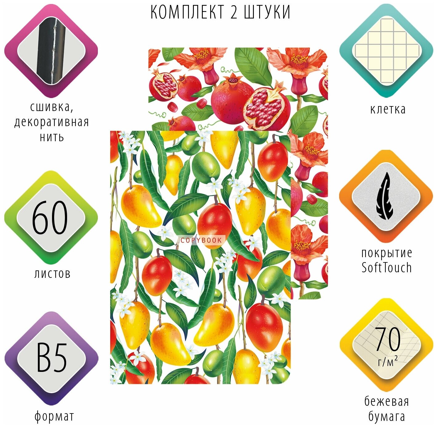 Тетрадь Brauberg 403822 B5 клетка 60 листов 2 шт Фрукты