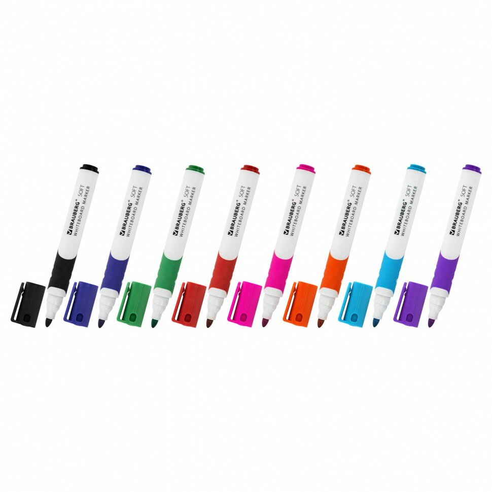 Маркеры стираемые для белой доски набор 8 цветов BRAUBERG "SOFT" 5 мм резиновая вставка 152112
