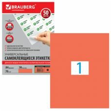 Этикетка самоклеящаяся 210х297 мм 1 этикетка красная 70 г/м2 50 л. BRAUBERG сырье Финляндия 127509