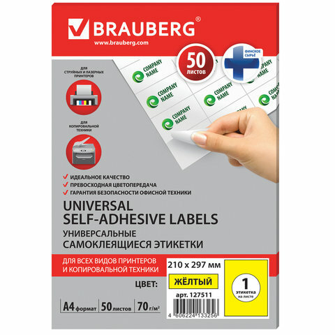 Сервис сравнения цен СкидкаГИД предлагает сравнить цены на товар «Этикетка BRAUBERG A4 Universal Self-Adhesive Labels 1 эт./лист 70 г/м² x50 127511»