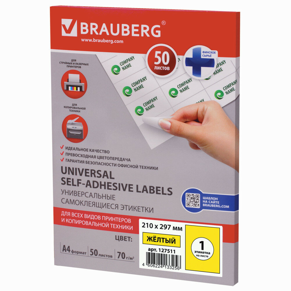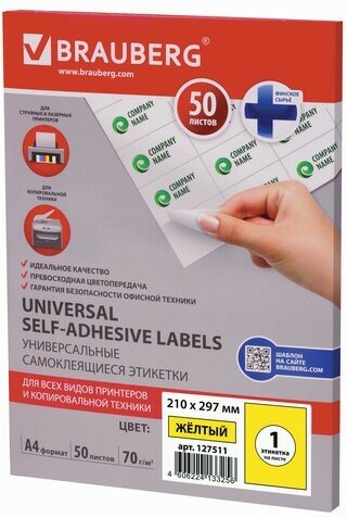 Этикетка BRAUBERG A4 Universal Self-Adhesive Labels 1 эт./лист 70 г/м² x50 127511
