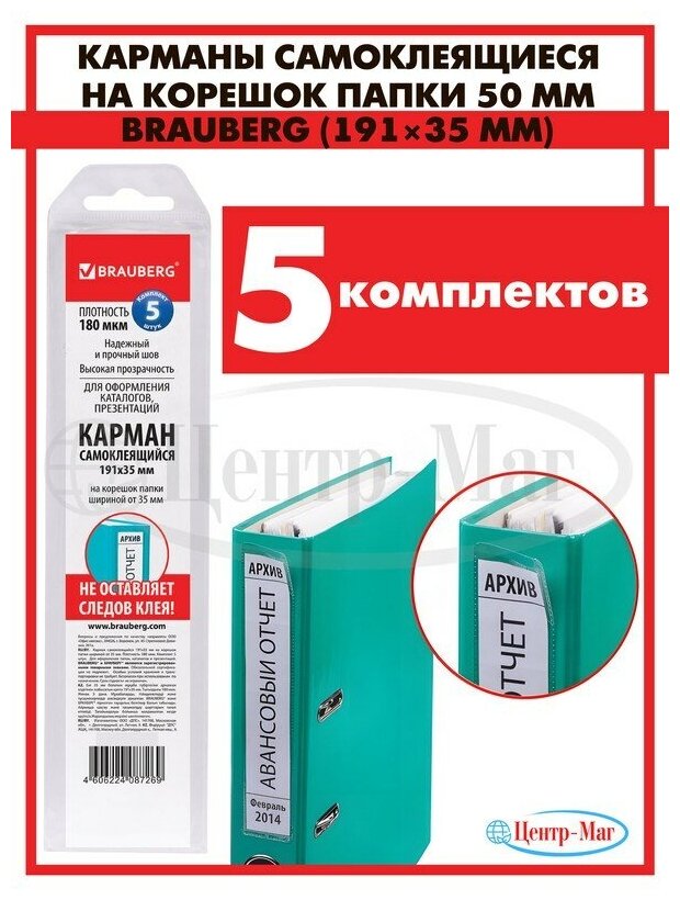 На сегодняшний день товар «BRAUBERG Карманы самоклеящиеся 5 шт. 191х35 мм на корешок папки 50 мм прозрачные 224073» можно купить с кешбеком в 1 магазине: Яндекс.Маркет