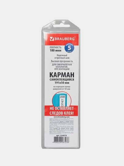 На сегодняшний день товар «BRAUBERG Карманы самоклеящиеся на корешок папки 70 мм 191х50 мм 5 шт. прозрачные 224074» можно купить с кешбеком в 1 магазине: Яндекс.Маркет
