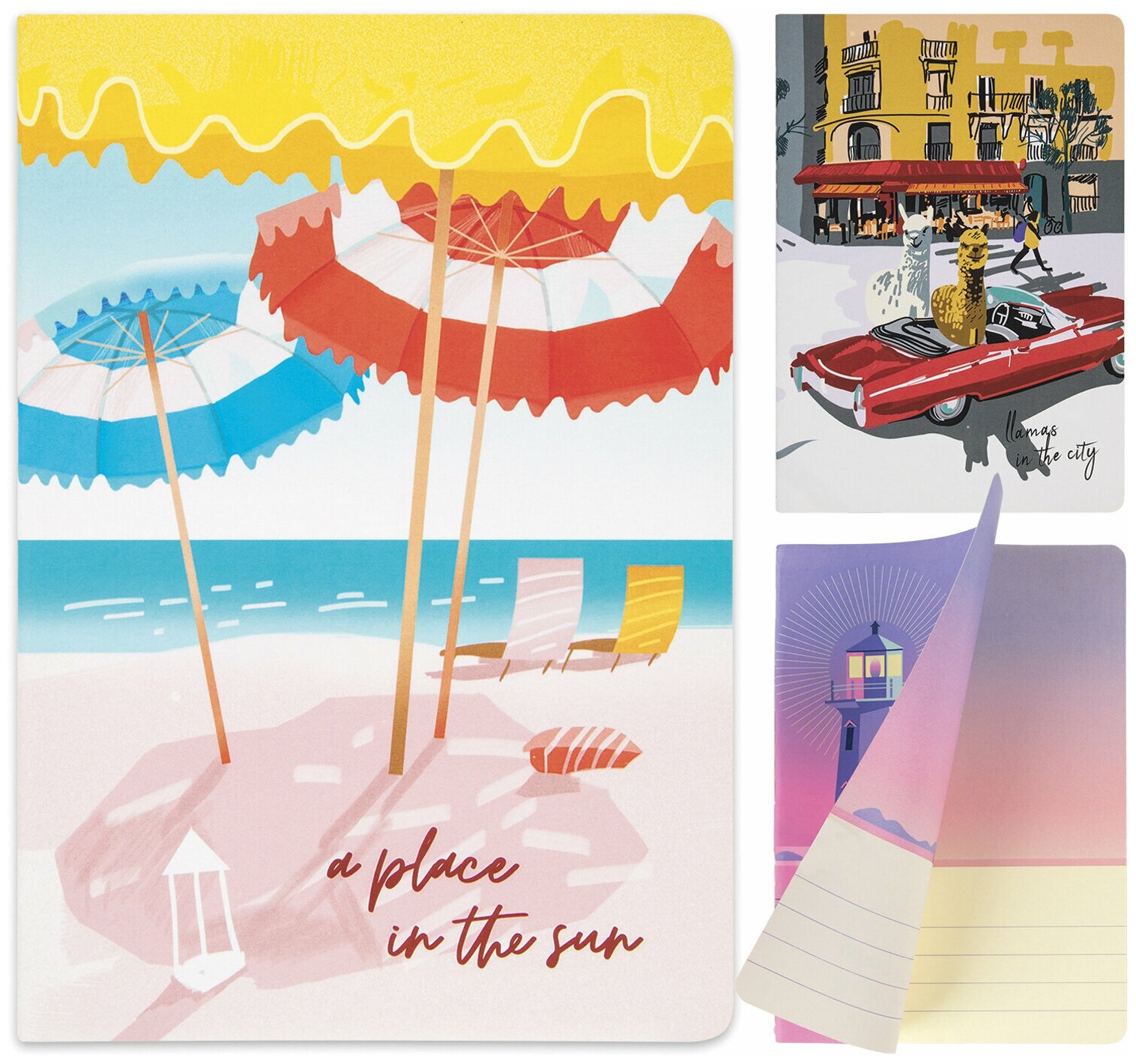 Тетради 40 л. в линию обложка SoftTouch набор 3 шт бежевая бумага 70 г/м2 сшивка А5 (147х210 мм) путешествие BRAUBERG 403799 (размер: 147x210 мм)