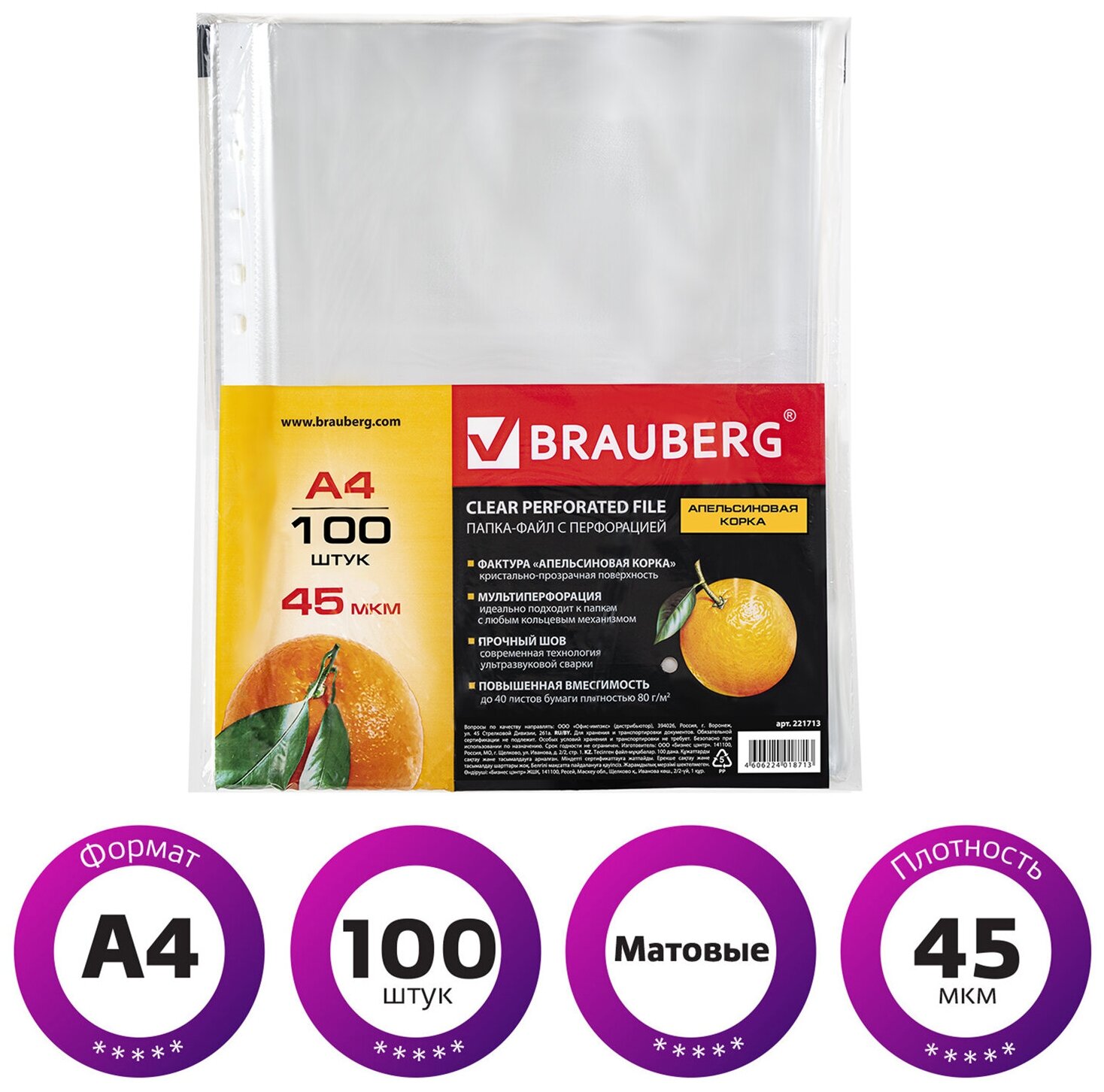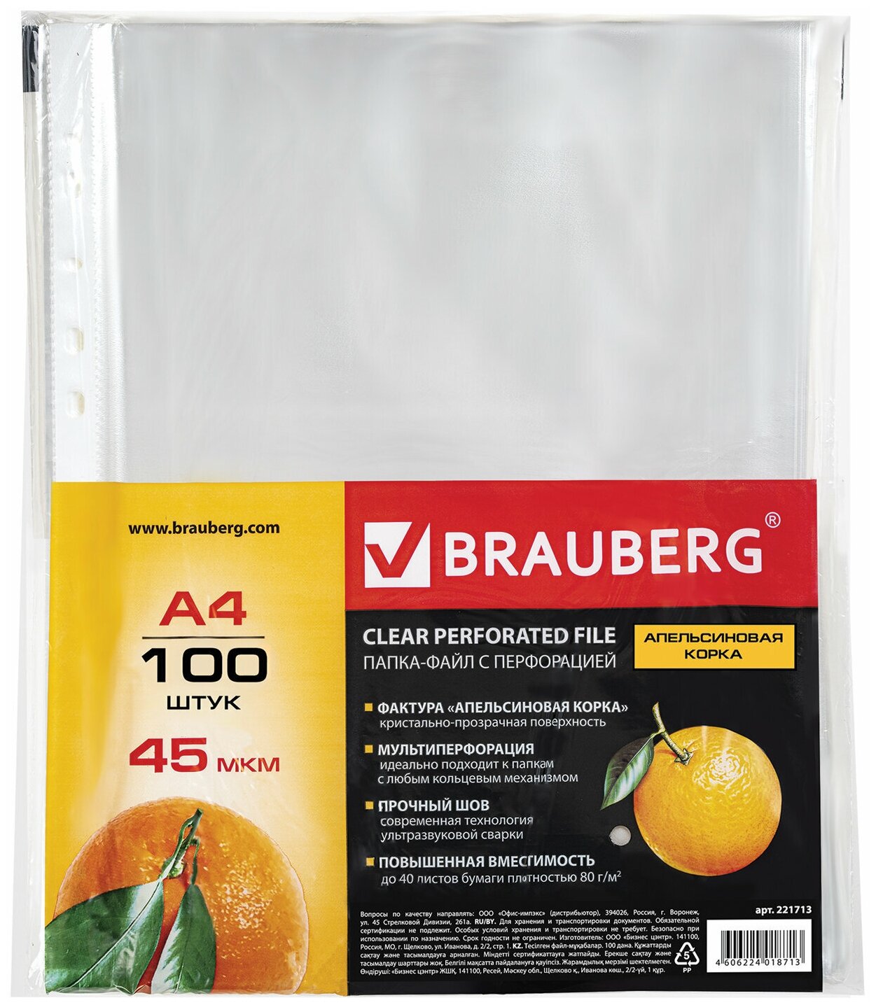 На сегодняшний день товар «BRAUBERG папка-файл перфорированная Апельсиновая корка А4 45 мкм 100 шт. бесцветные 221713» можно купить с кешбеком в 1 магазине: Яндекс.Маркет